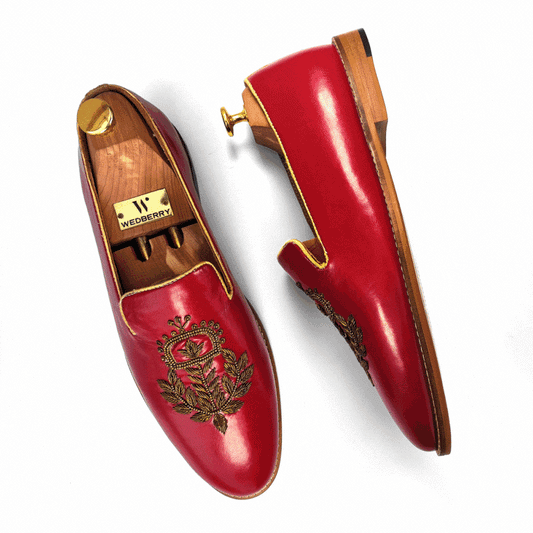 Cherry Gold Zardozi Handwork Slip-on Shoes for Men