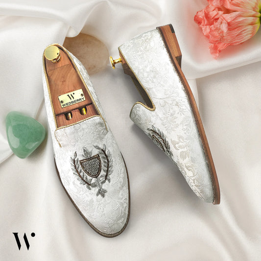 White Brocket Zardozi Handwork Wedding Shoes for Men