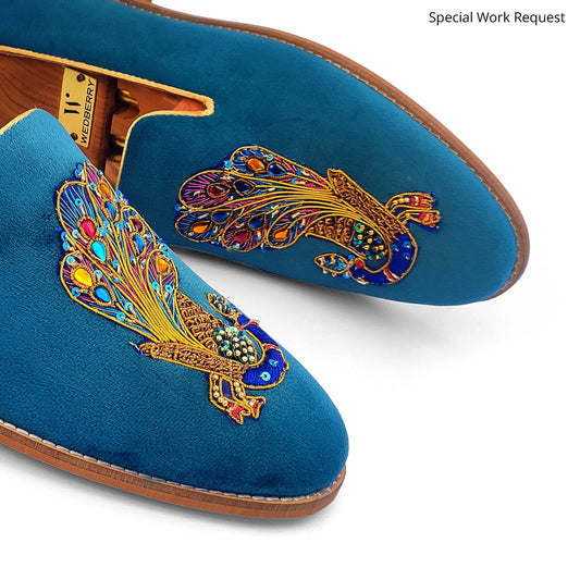 Turquoise Blue Loafer with Special Peacock Zardozi Work for Men