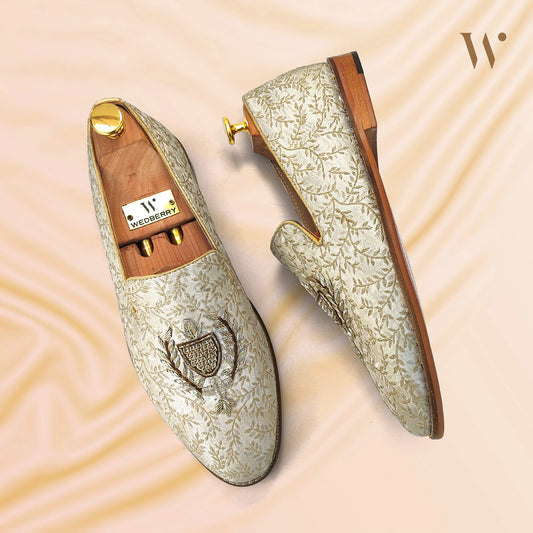 Off White Gold Zardozi Handwork Wedding Shoes Ethnic Shoes for Men