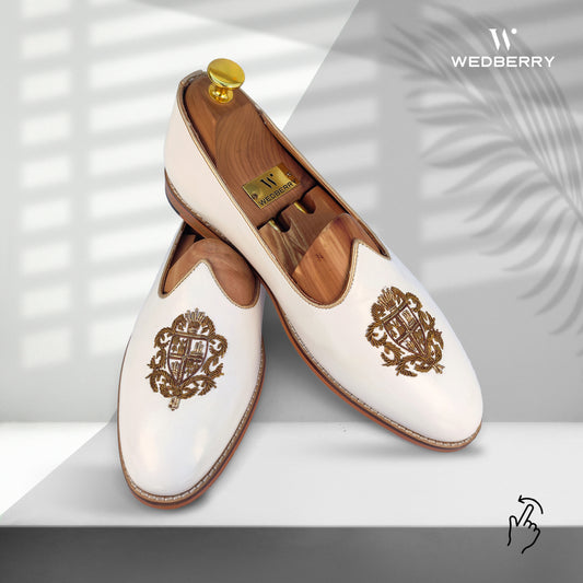 White Zardozi Handwork Wedding Ethnic Party Shoes Loafer for Men