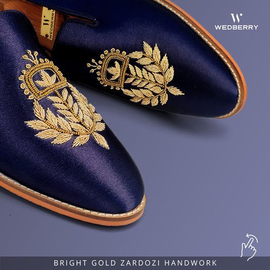 Navy Blue Zardozi Handwork Wedding Ethnic Shoes Party for Men