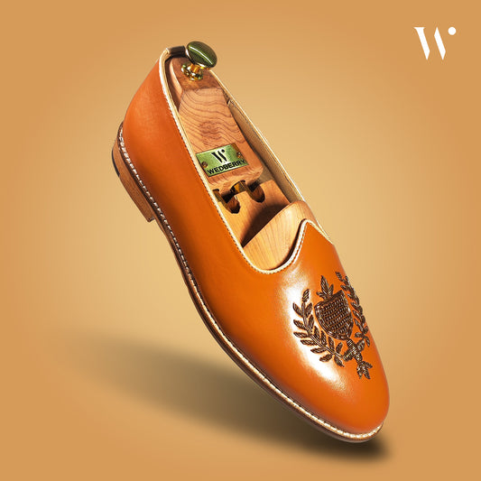 Tan Zardozi Handwork Wedding Shoes Ethnic Mojari for Men