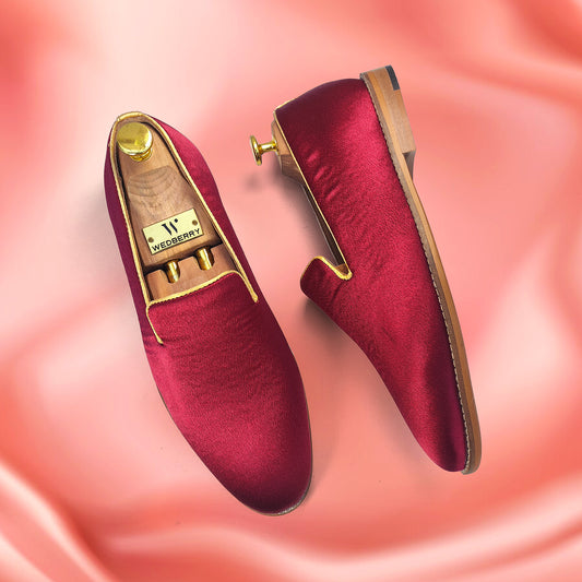 Maroon Golden Zardozi Handwork Wedding Ethnic Shoes Loafers for Men