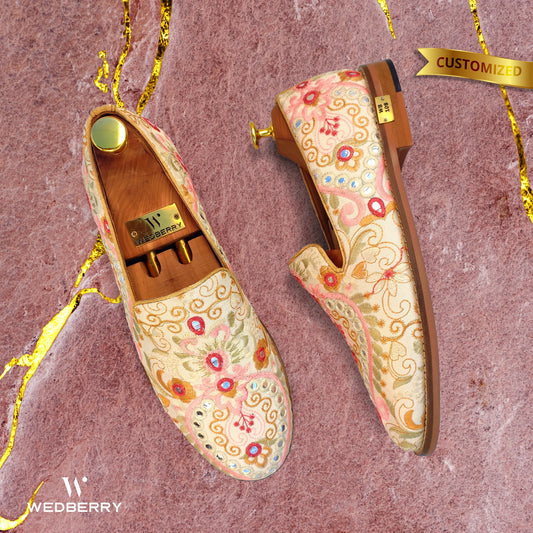 Ivory Pink Wedding Ethnic Shoes Loafer Slipon for Men