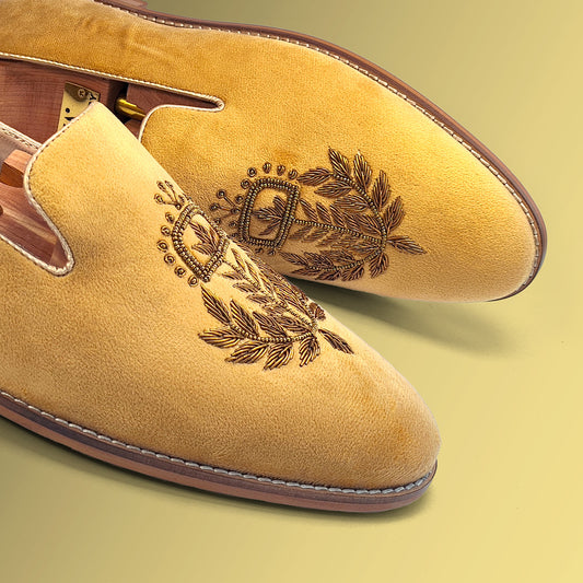 Beige Crème Velvet Handwork Loafers