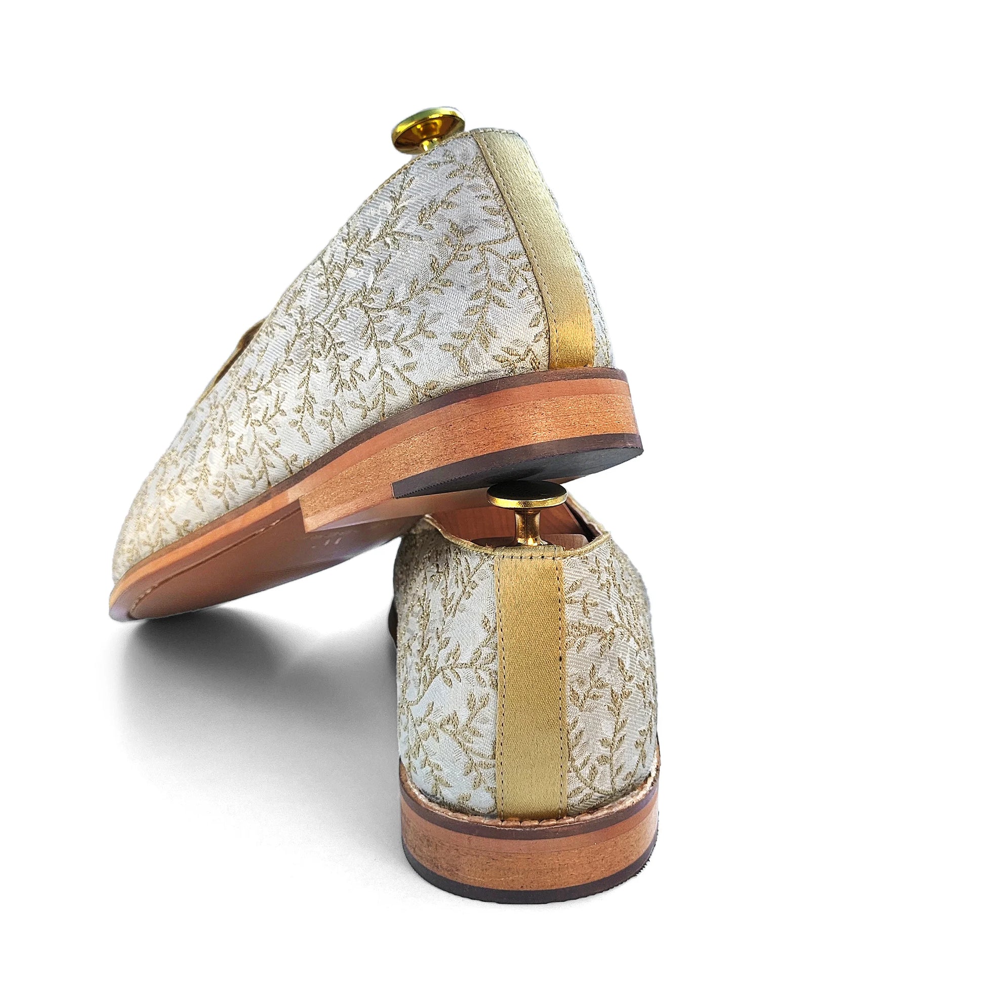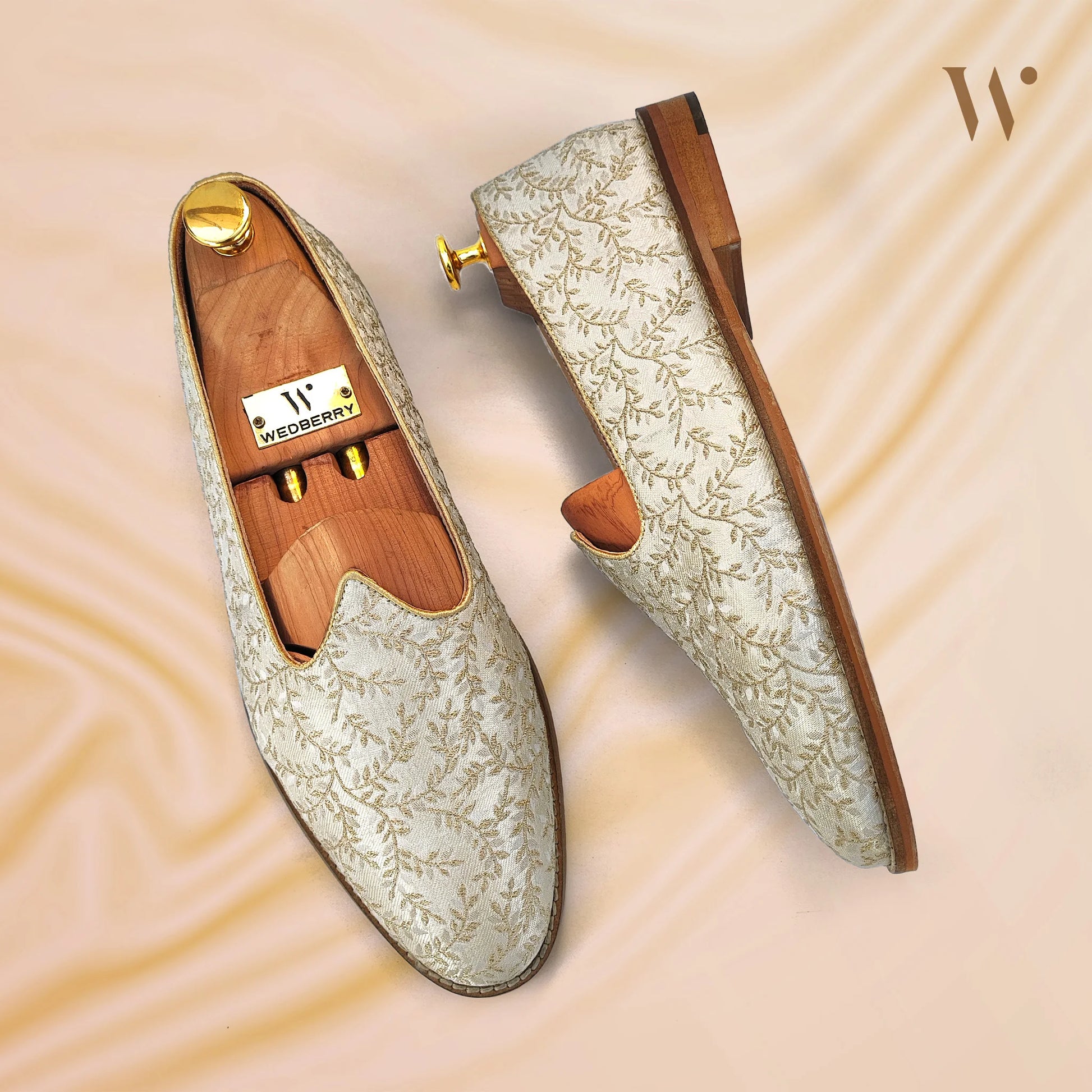 Beige Brocket Wedding Shoes Mojari Ethnic Moajri Nagra for Men