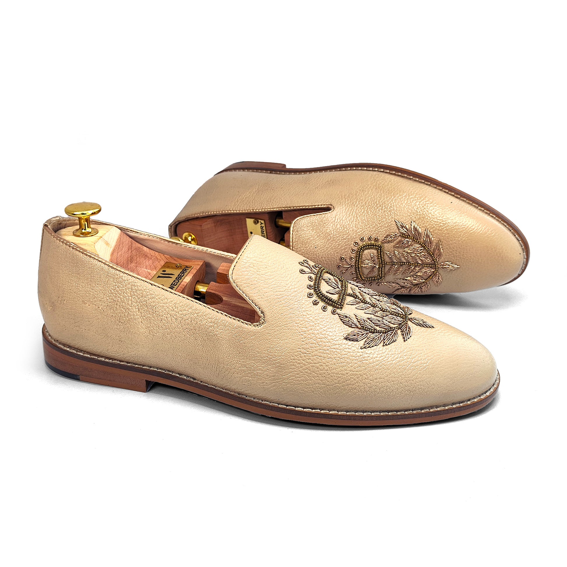 Beige Leather Style with Antique Gold Zardozi Handwork for Men