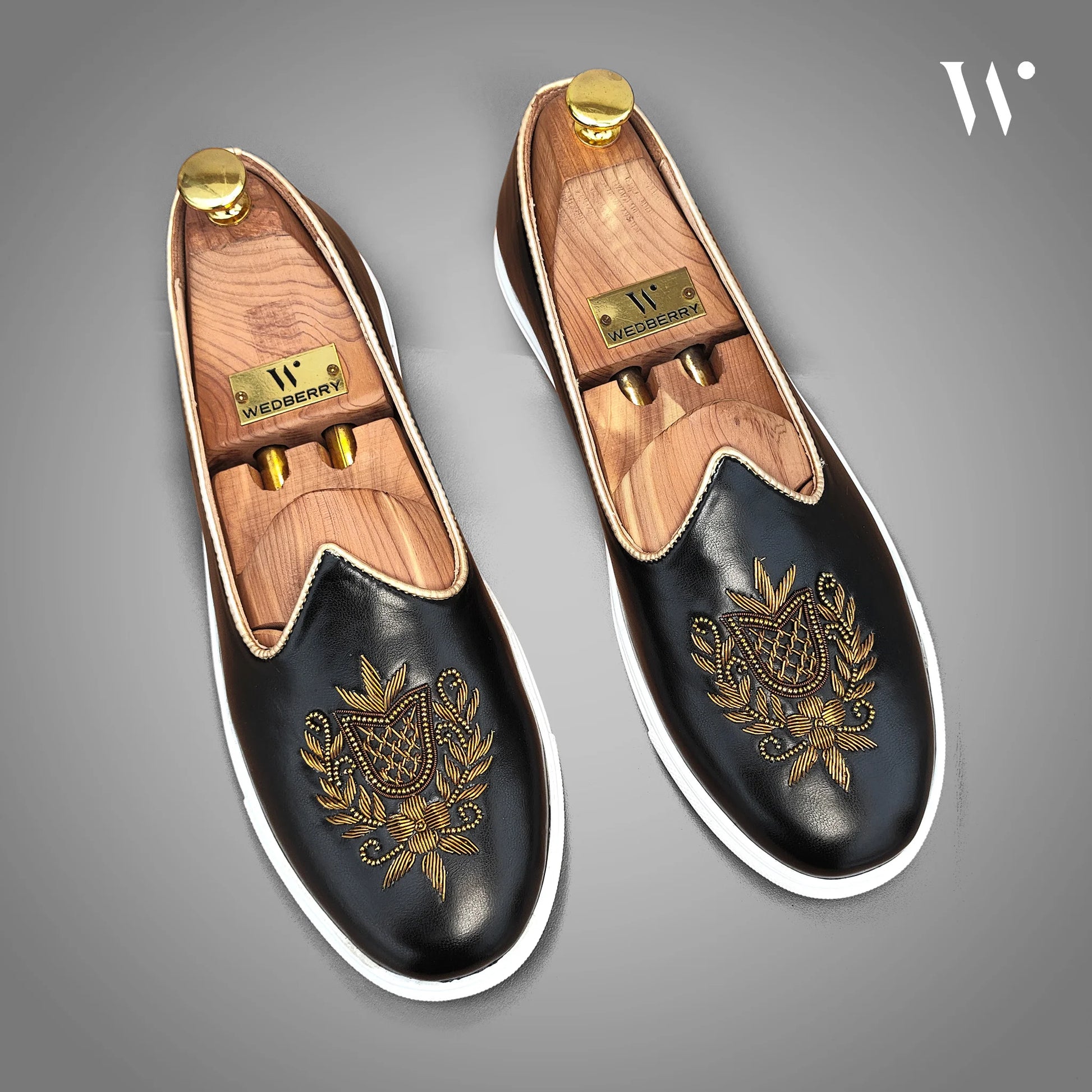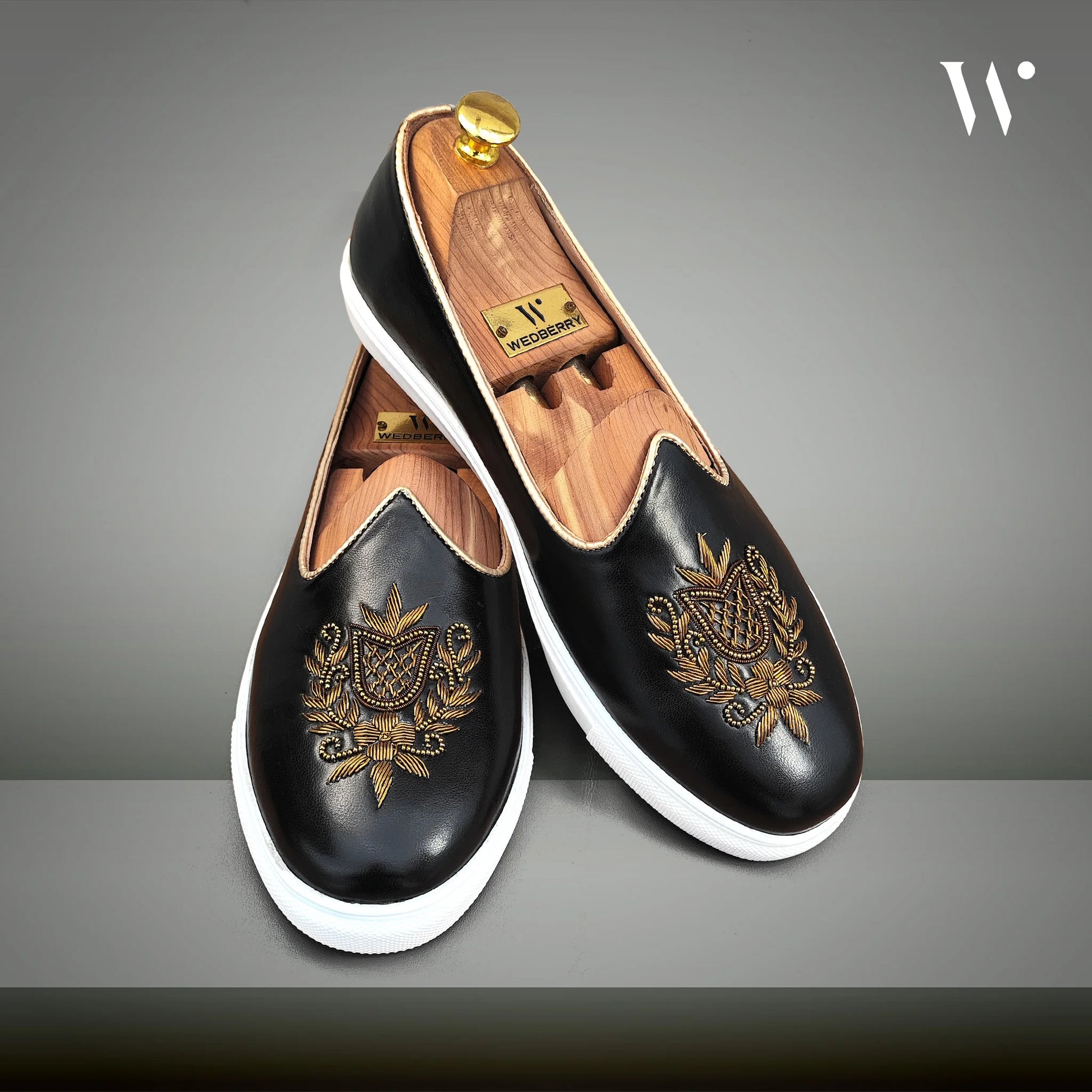 Black Zardozi Handwork Wedding Sneaker Shoes Ethnic Mojari for Men
