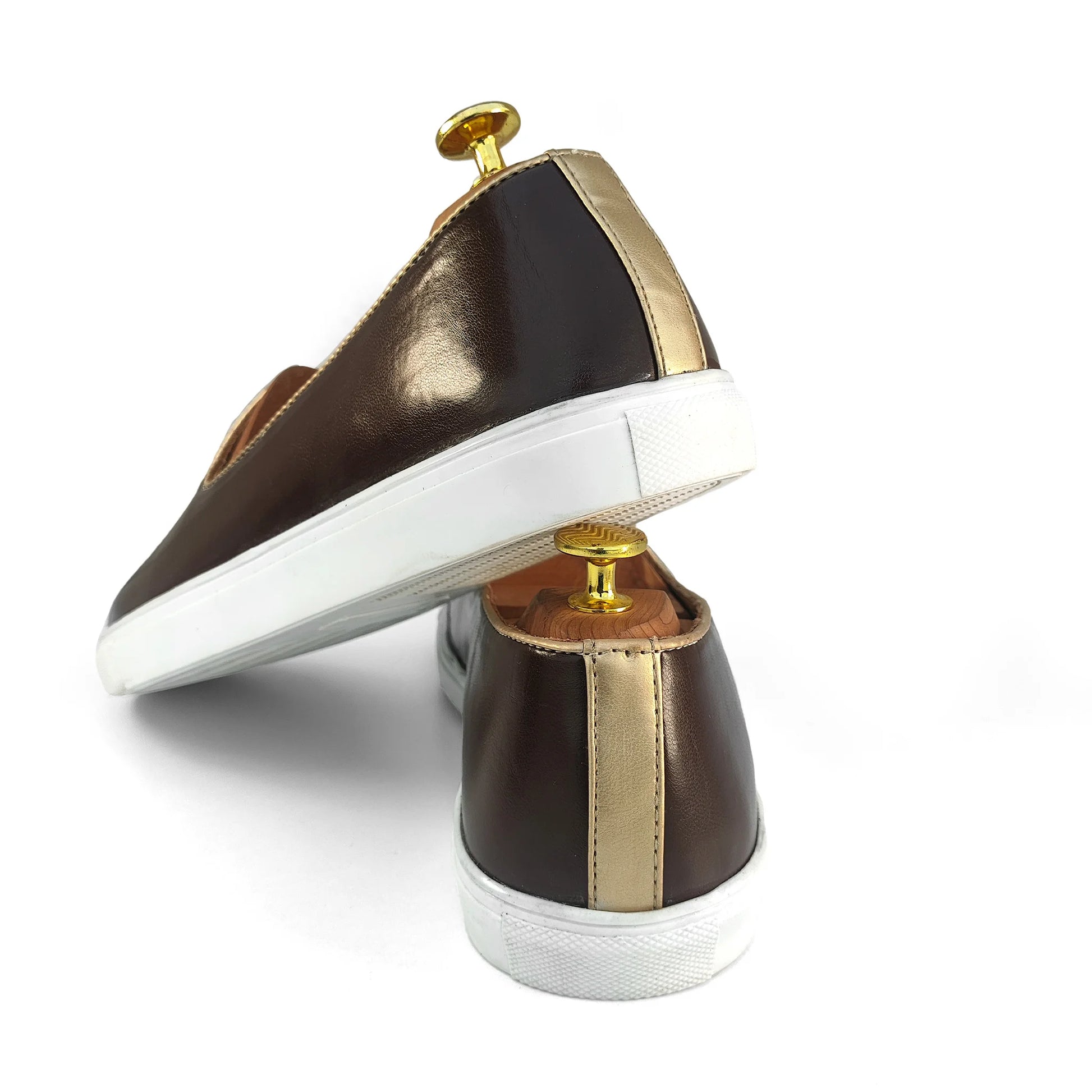 Brown Antique Gold Zardozi Handwork Wedding Shoes Sneaker for Men