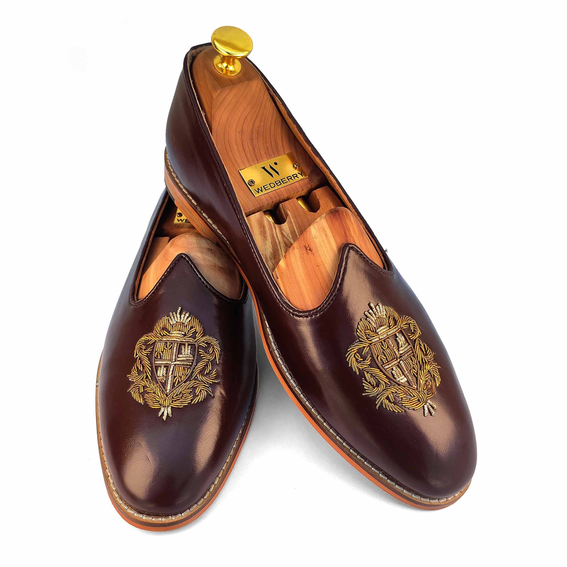 Brown Zardozi Handwork Nagra Slipon Mojri for Men