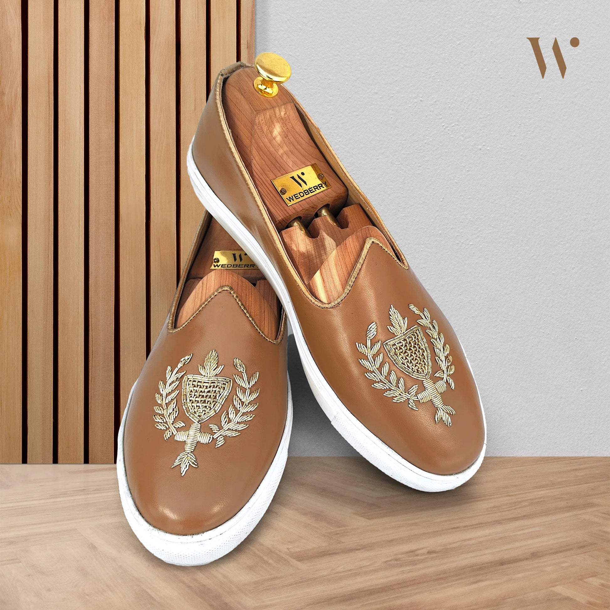 Camel Light Gold Zardozi Handwork Wedding Shoes Ethnic Sneaker for Men
