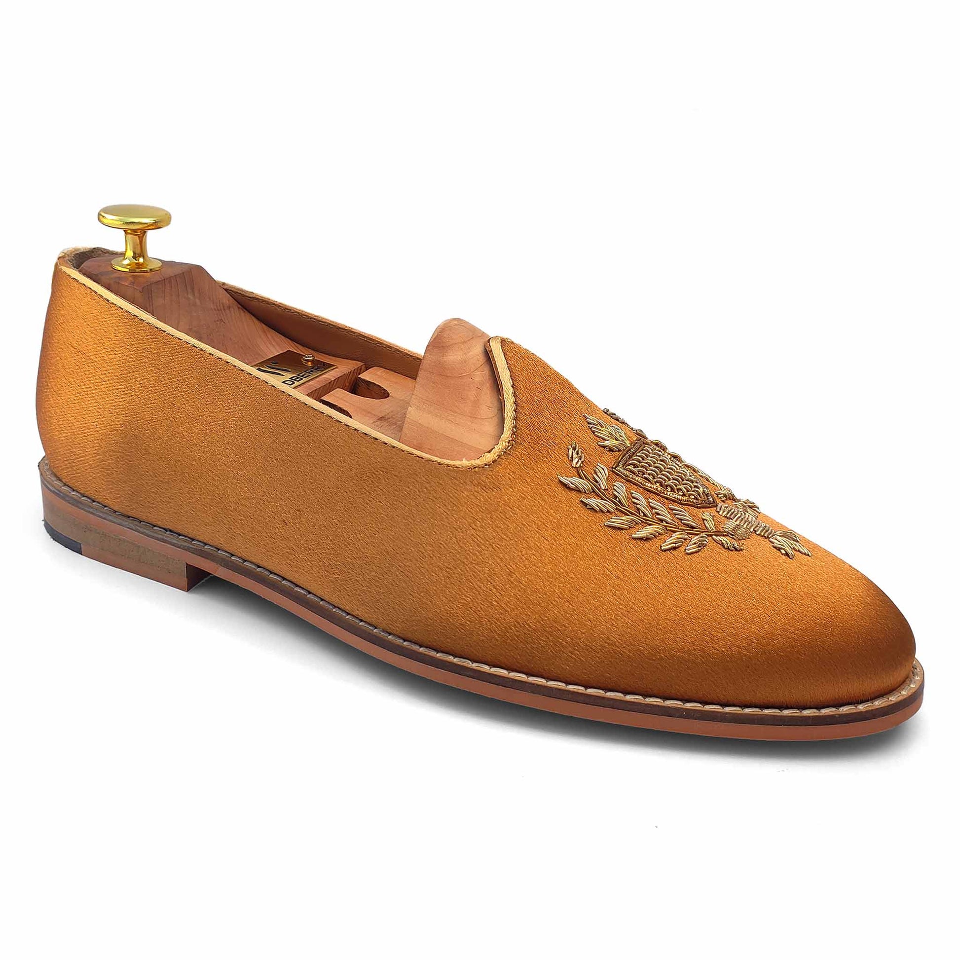 Copper Gold Satin Zardozi Handwork Nagra Slipon Mojri for Men