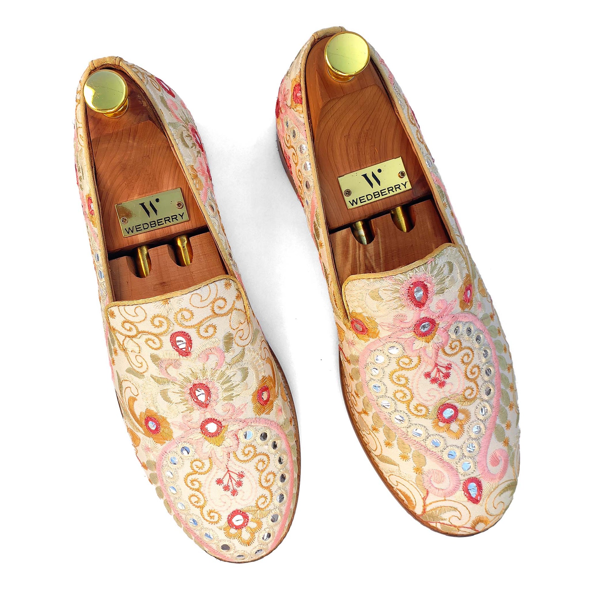Ivory Pink Wedding Ethnic Shoes Loafer Slipon for Men
