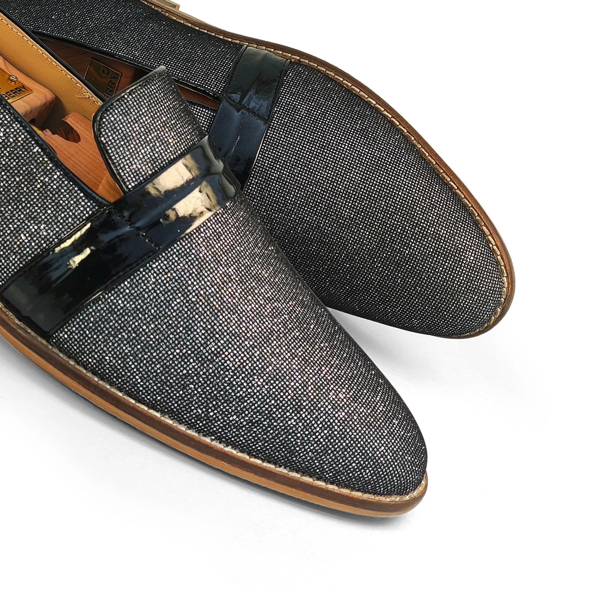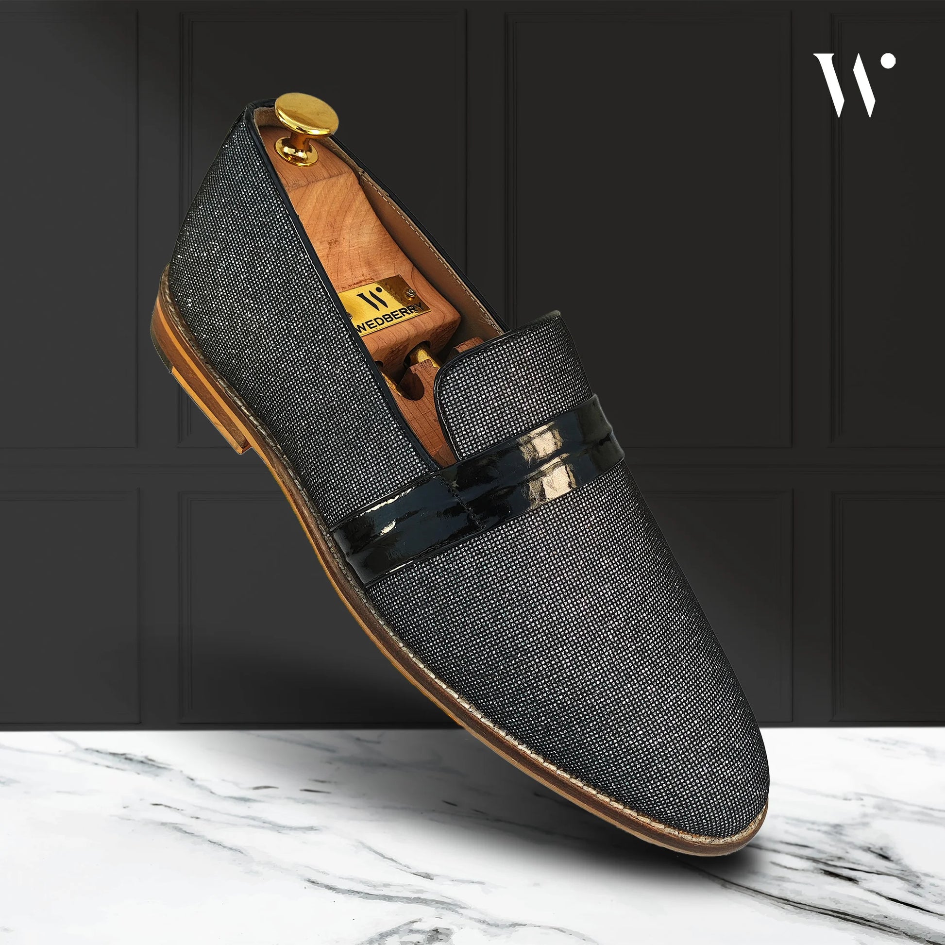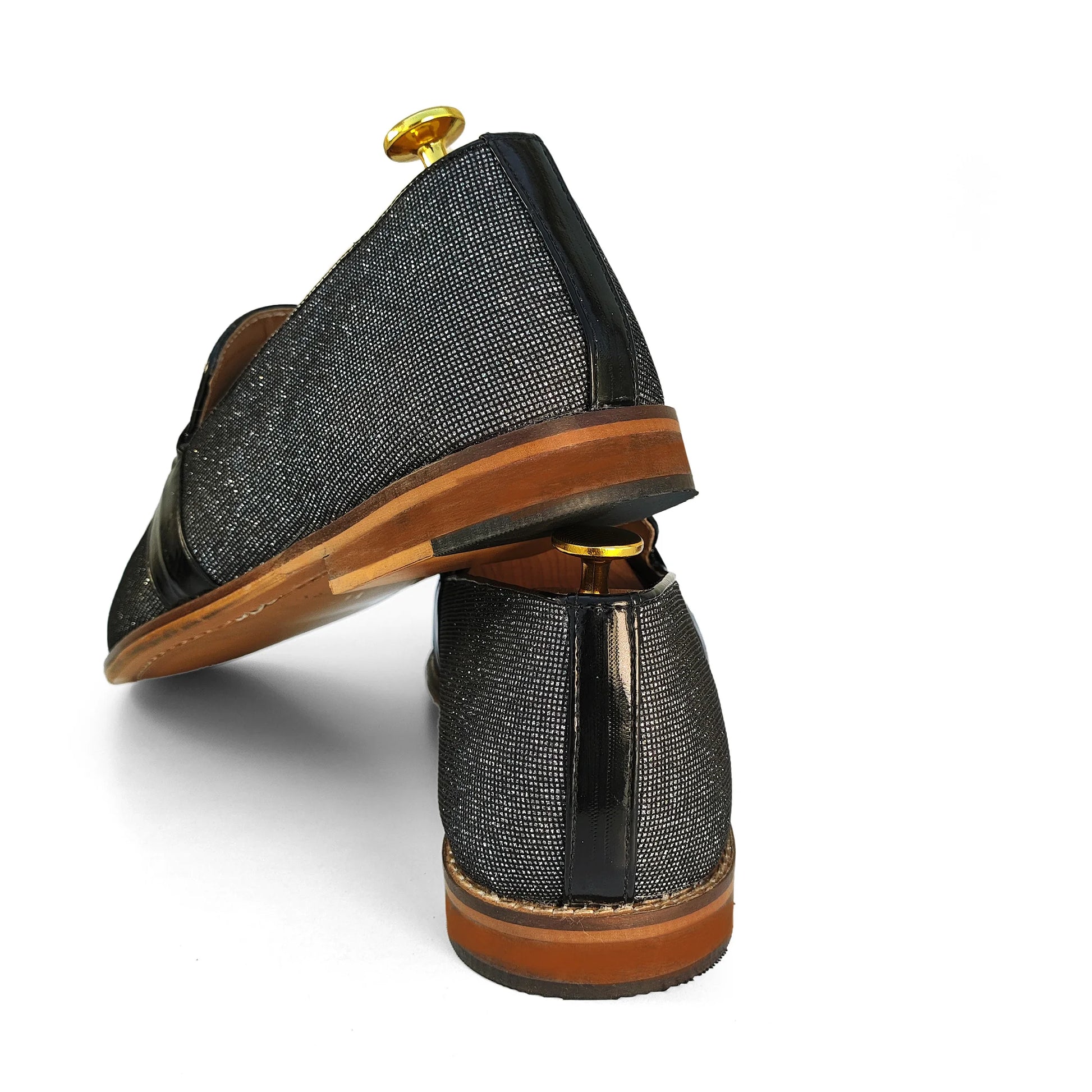 Grey Glitter Black Hugo Strap Ethnic Wedding Party Shoes Loafer for Men