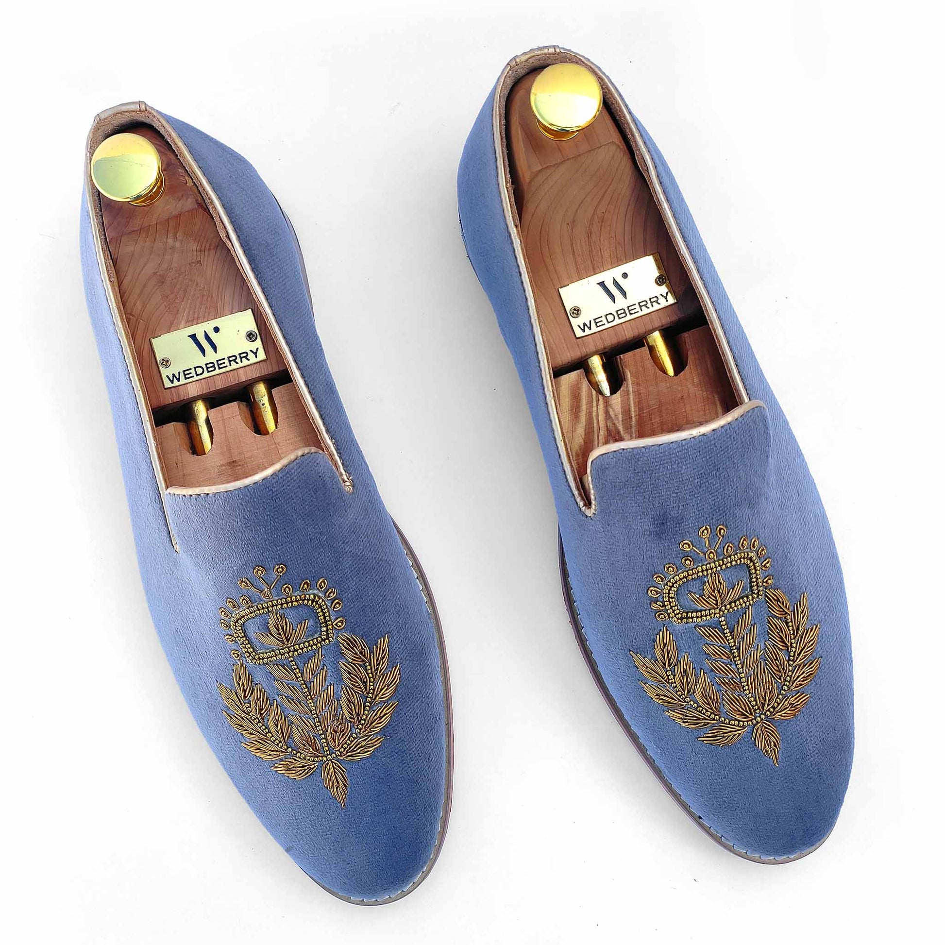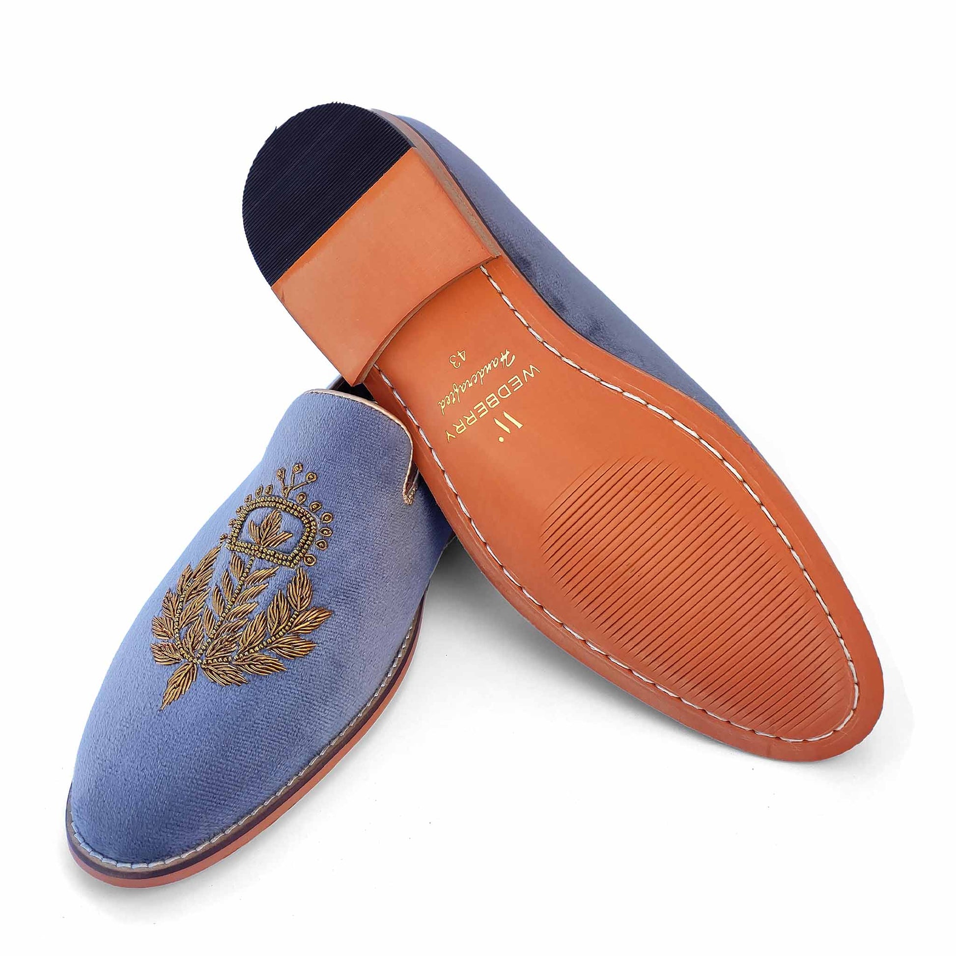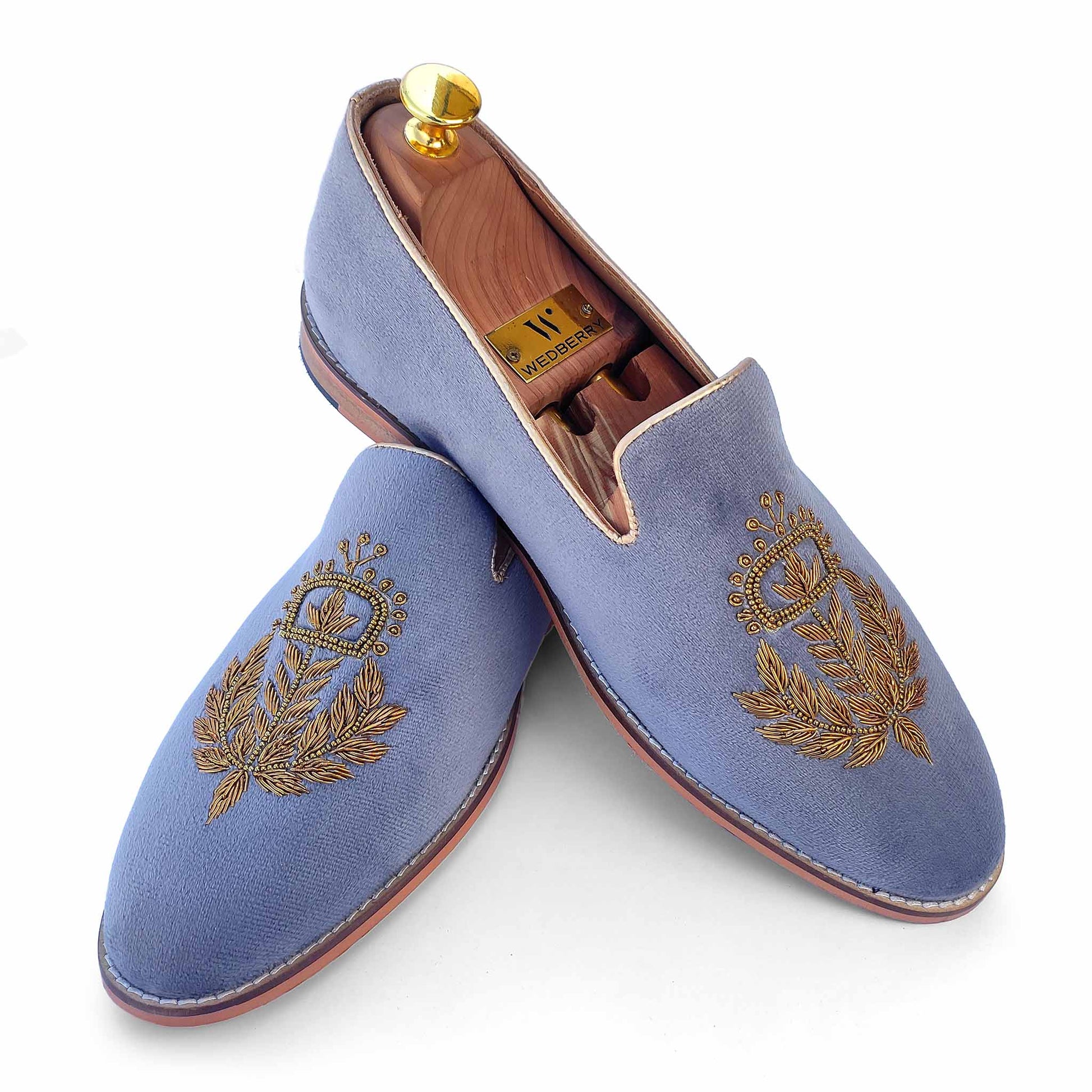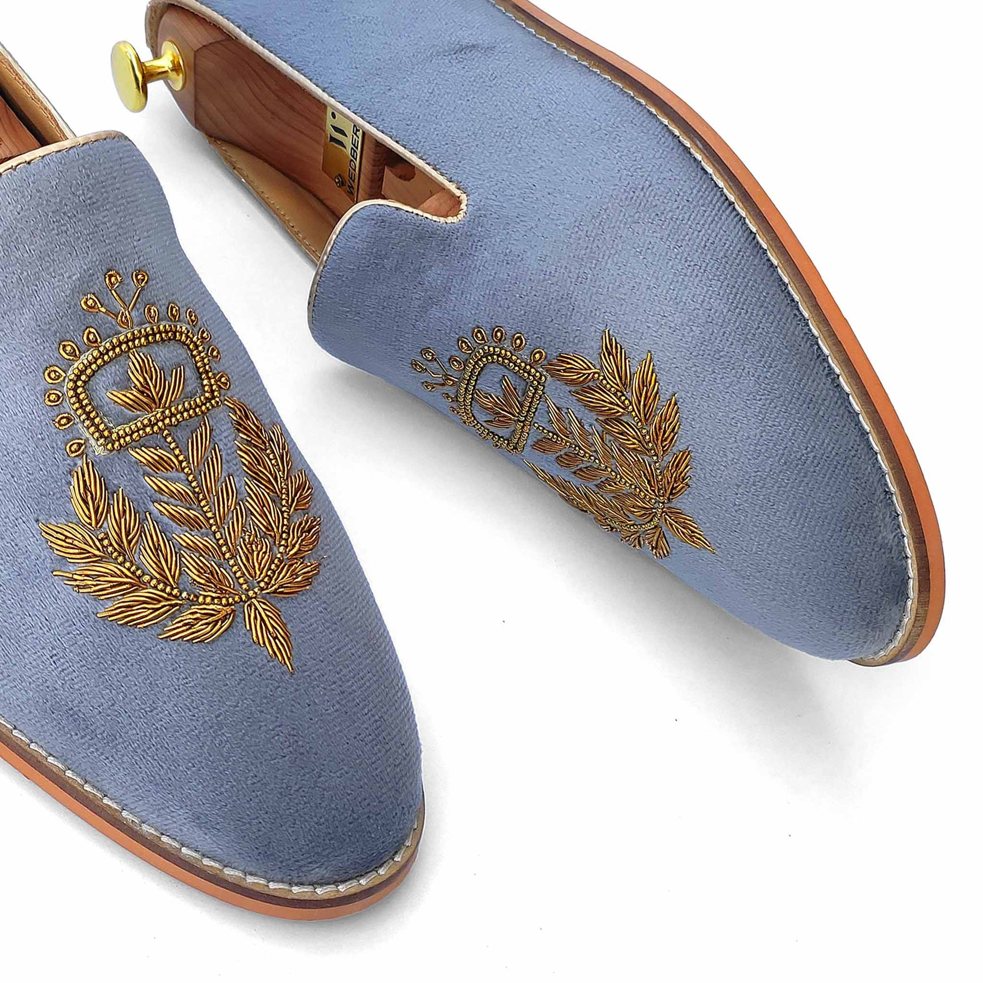 Grey Velvet Zardozi Wedding Ethnic Shoes Handwork for Men