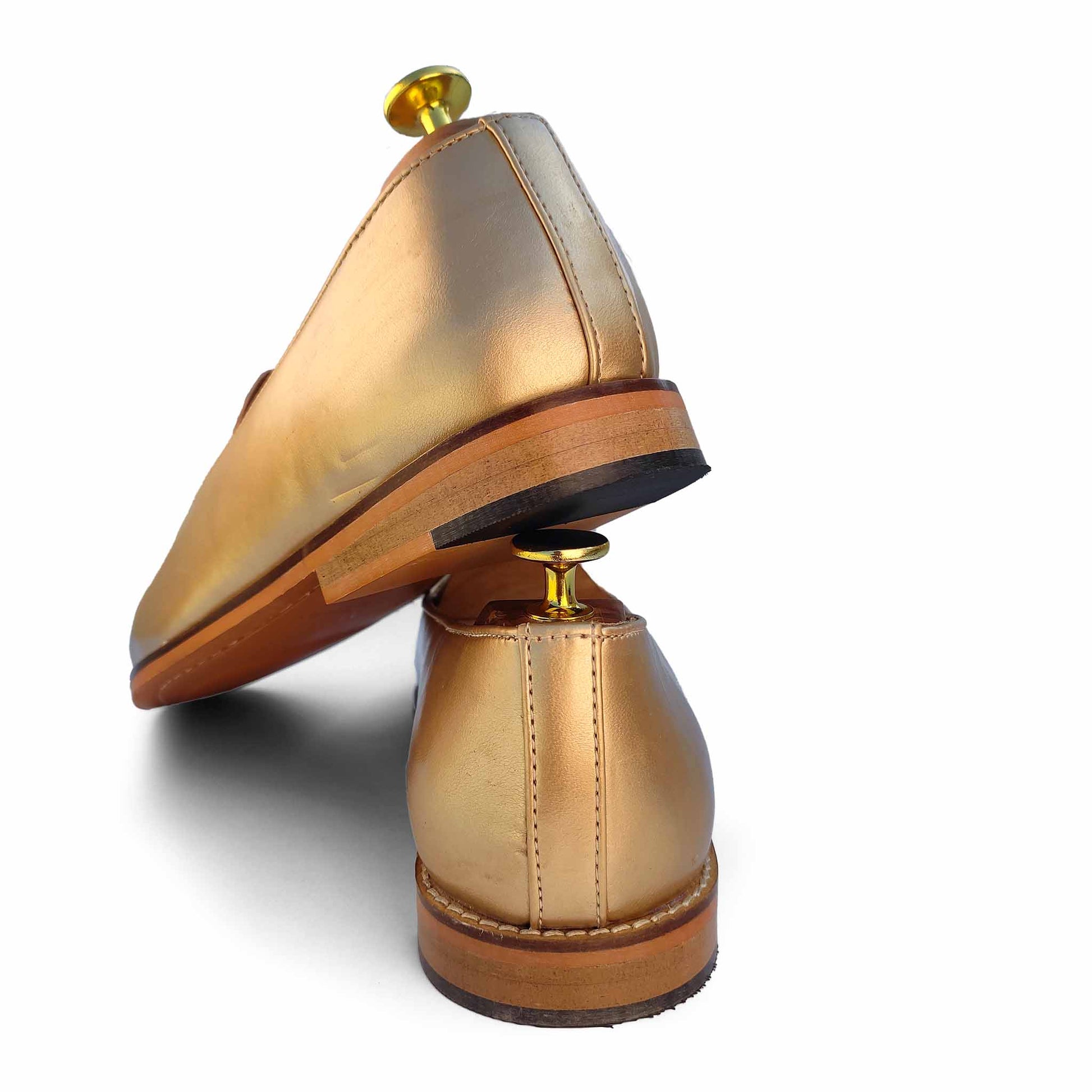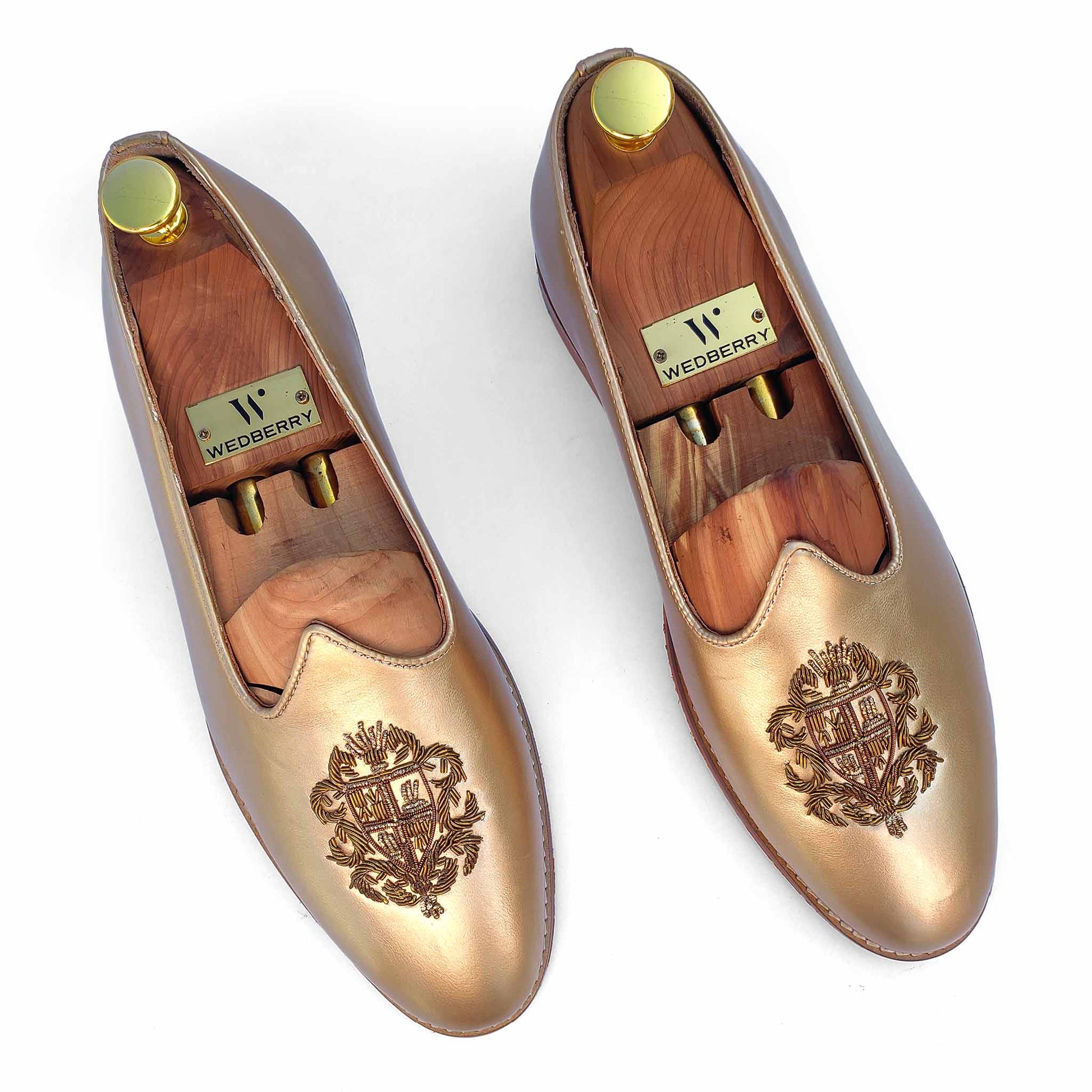Light Gold Zardozi Handwork Wedding Shoes Ethnic Loafers Mojri for Men