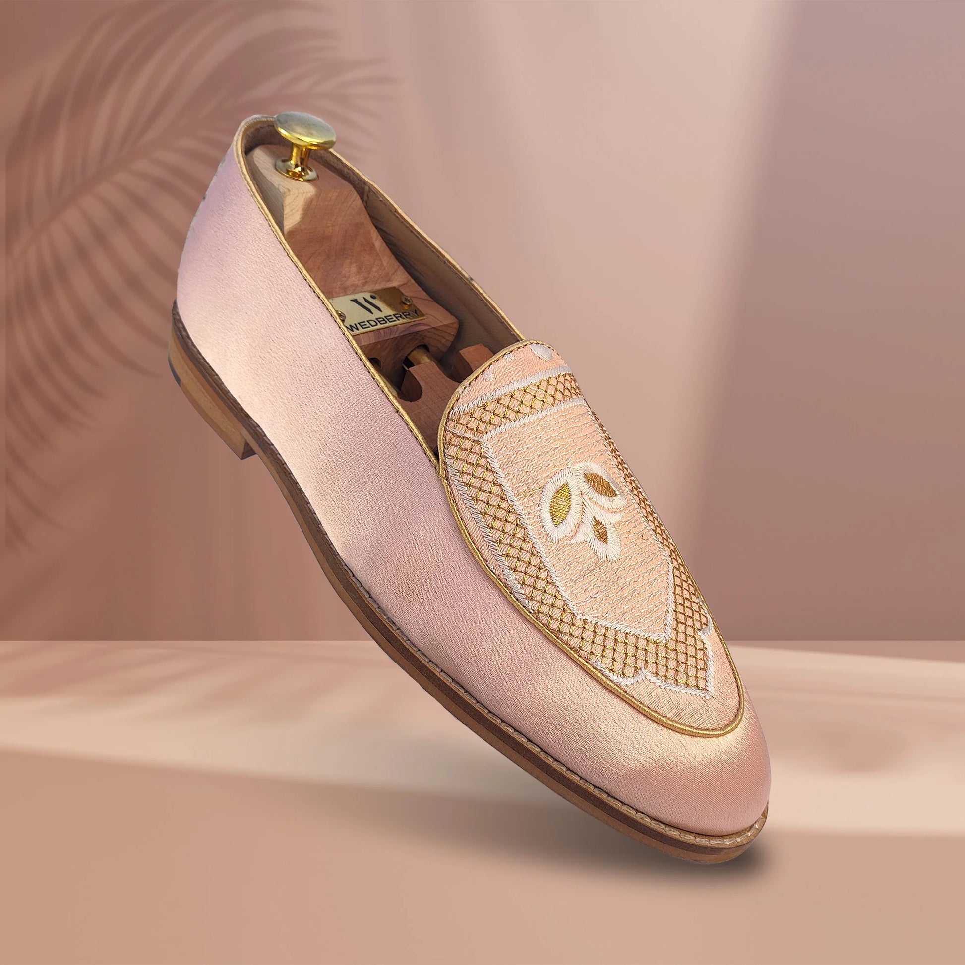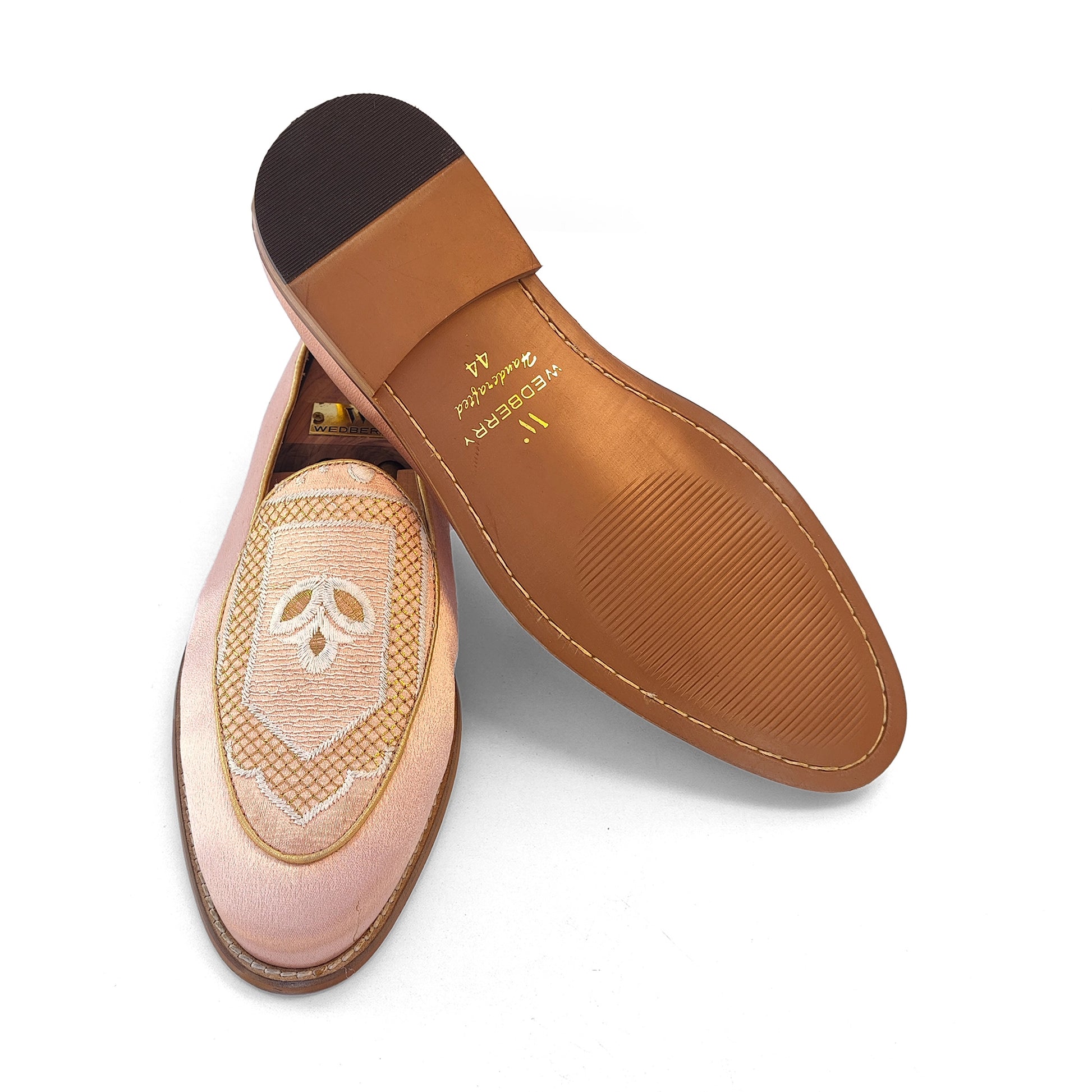 Light Pink Jave Apron Embroidery Wedding Ethnic Loafer Slipon for Men