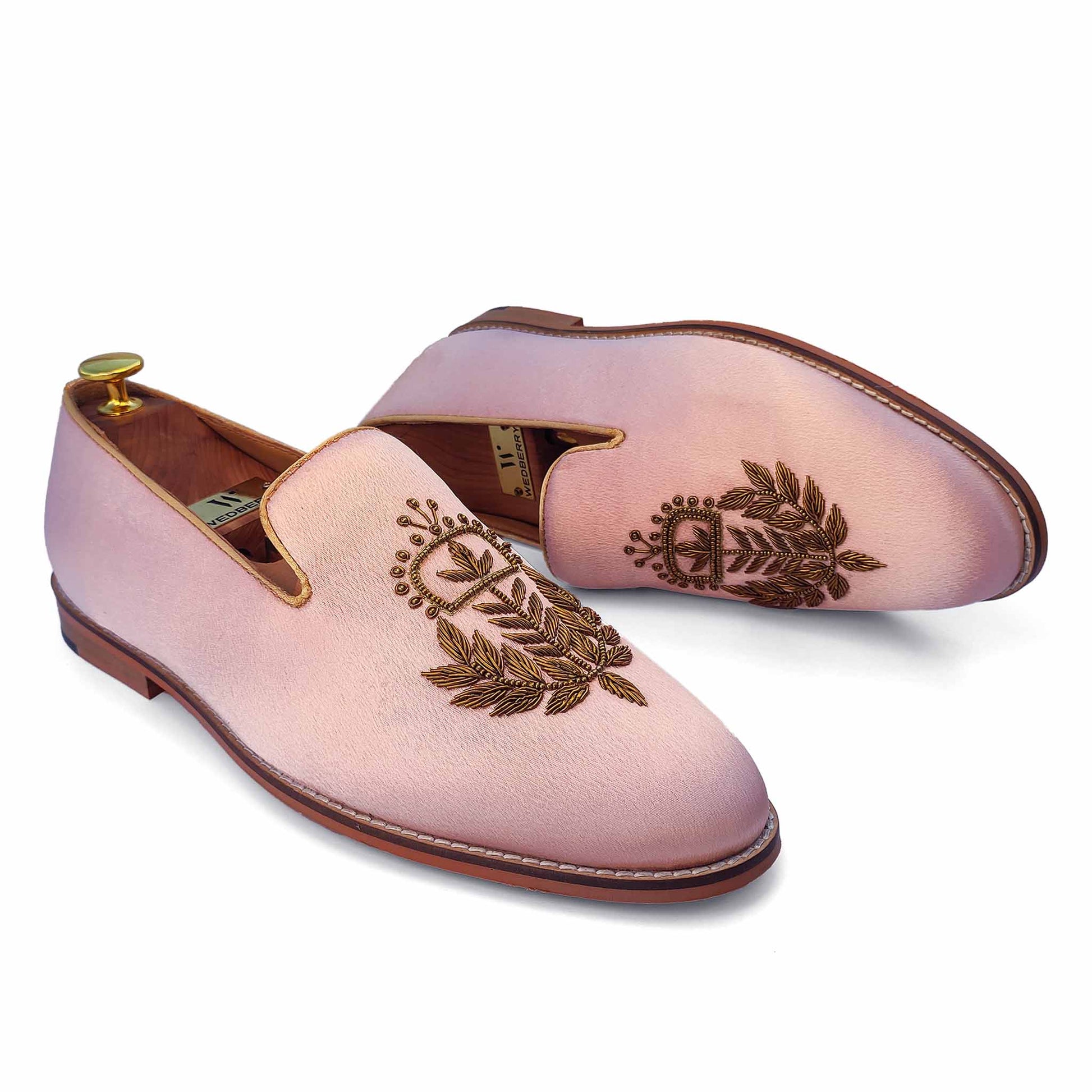 Light Pink Zardozi Handwork Wedding Shoes Ethnic Loafers for Men