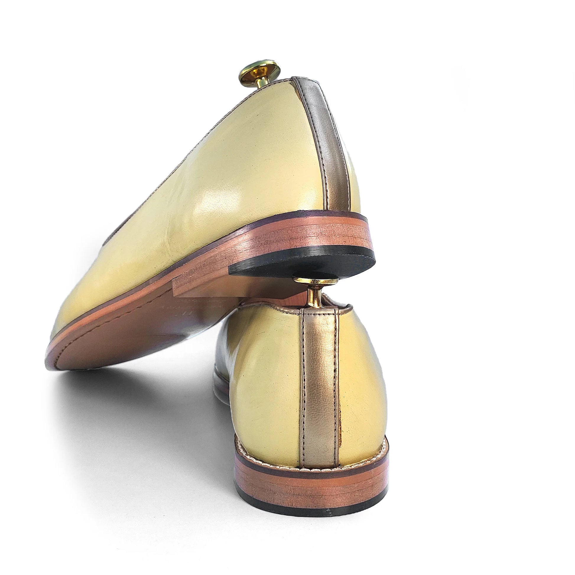 Light Yellow Light Gold Zardozi Handwork Wedding Shoes Ethnic Mojari for Men