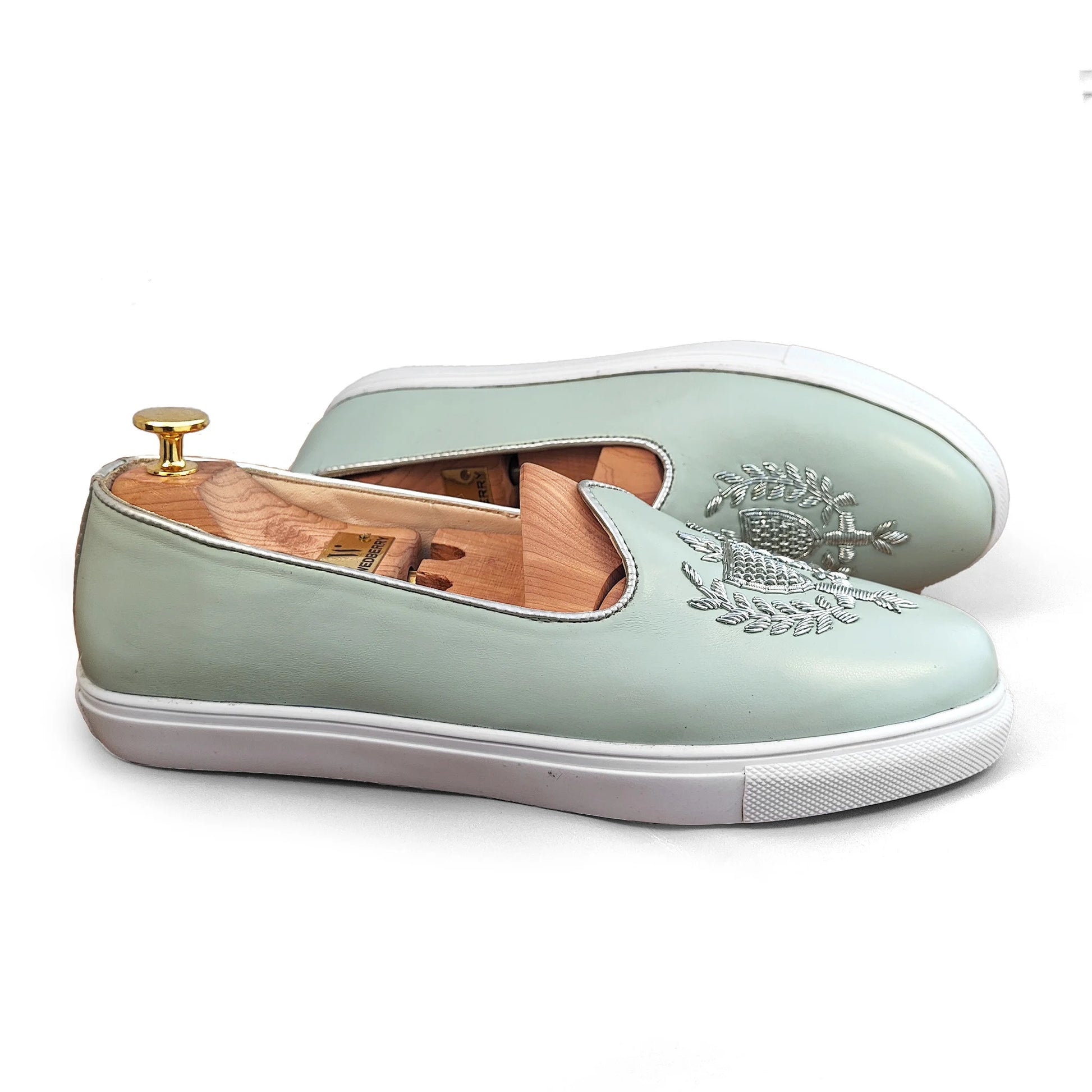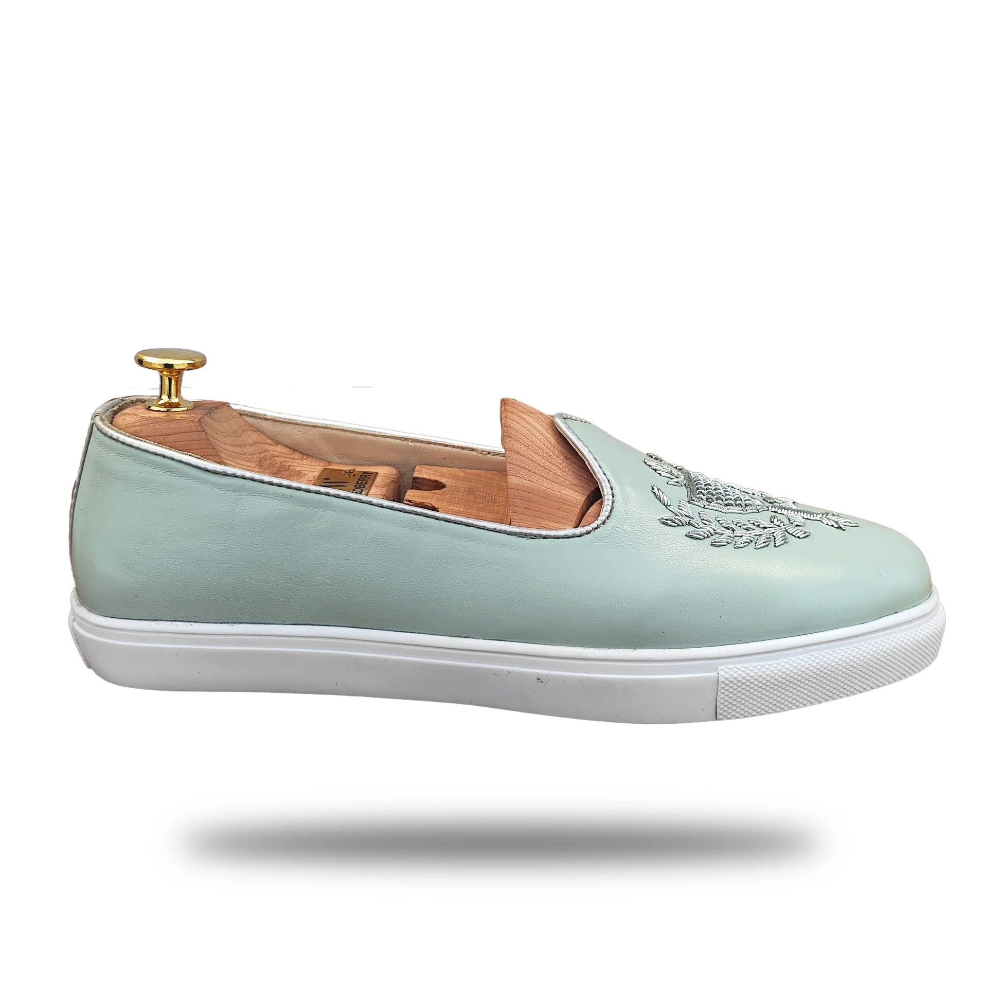Mint Green Zardozi Handwork Wedding Sneaker Shoes Ethnic Mojari for Men