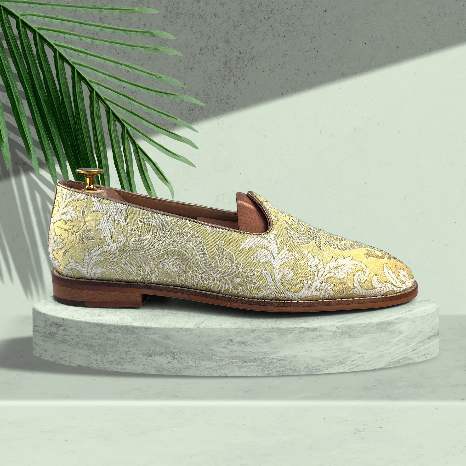 Molten Ice Gold Ethnic Wedding Mojari Shoes for Men
