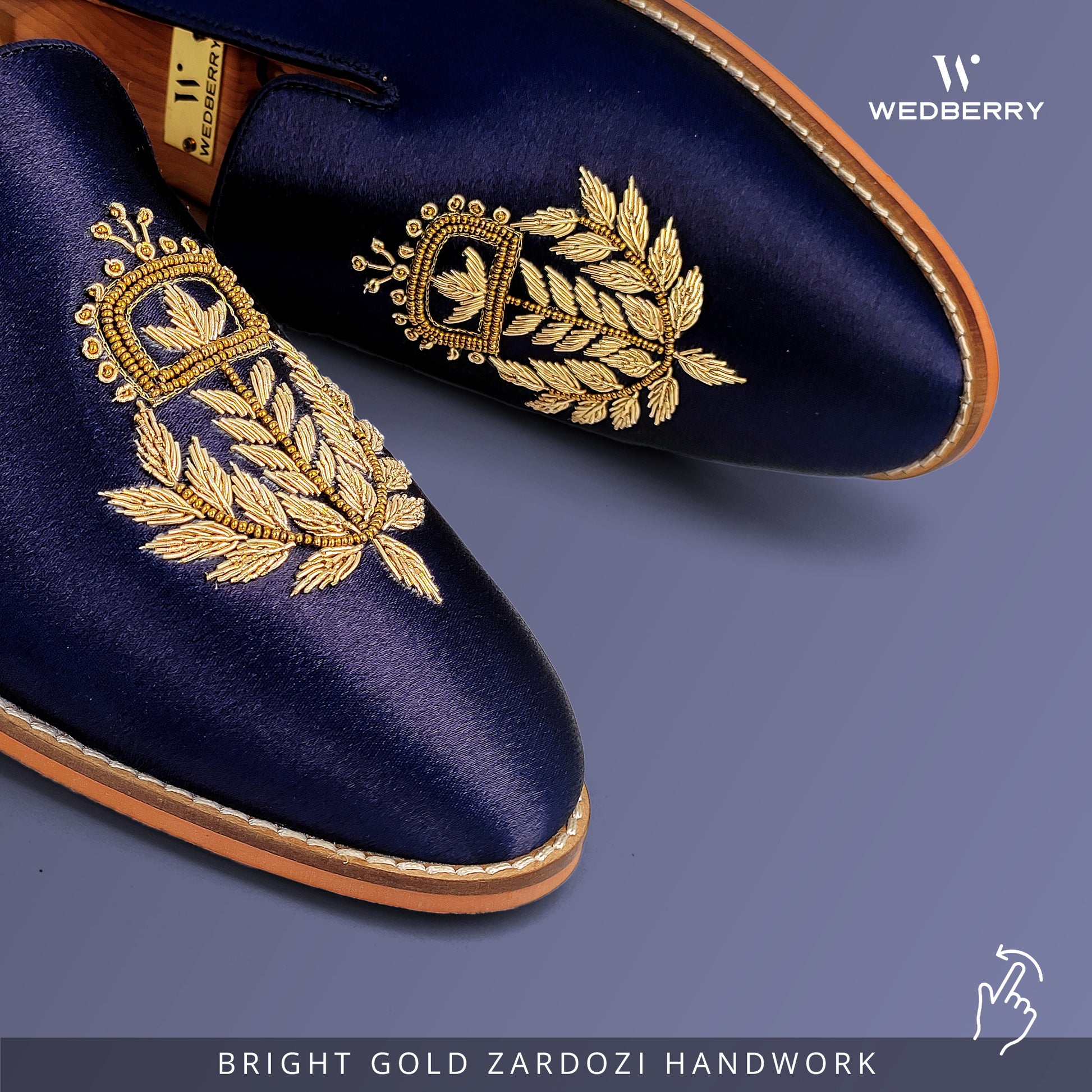 Navy Blue Zardozi Handwork Wedding Ethnic Shoes Party for Men