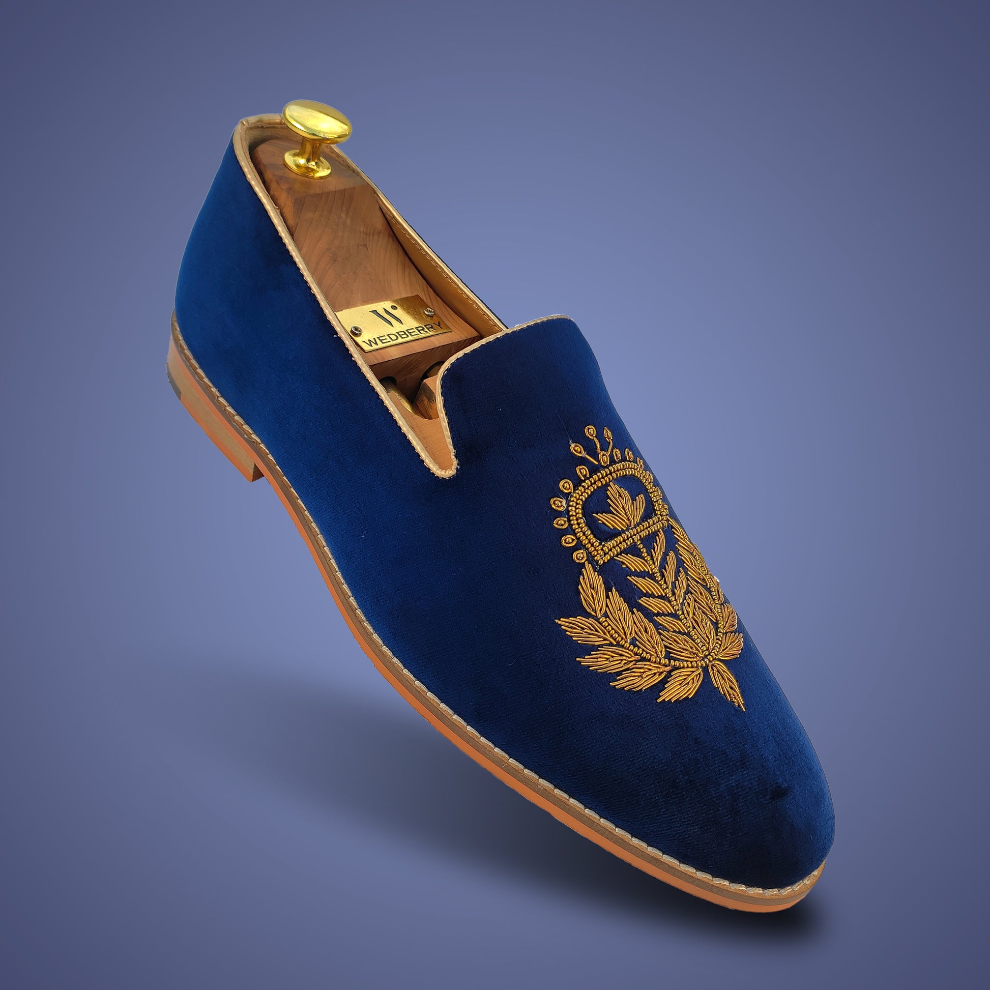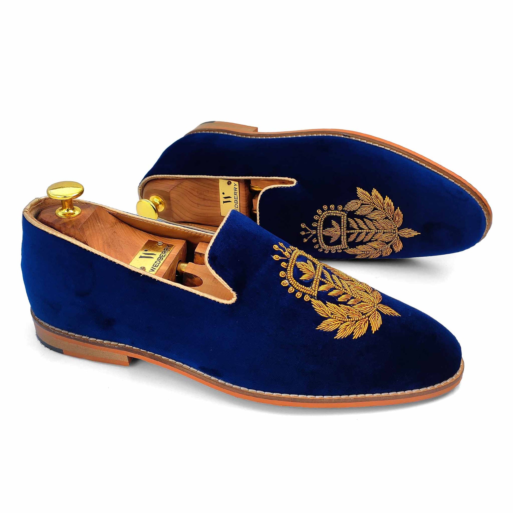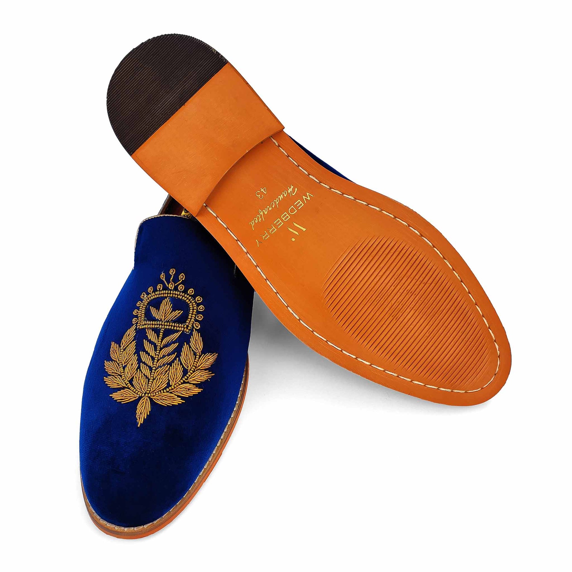 Navy Blue Velvet Zardozi Handwork Wedding Ethnic Shoes Party for Men