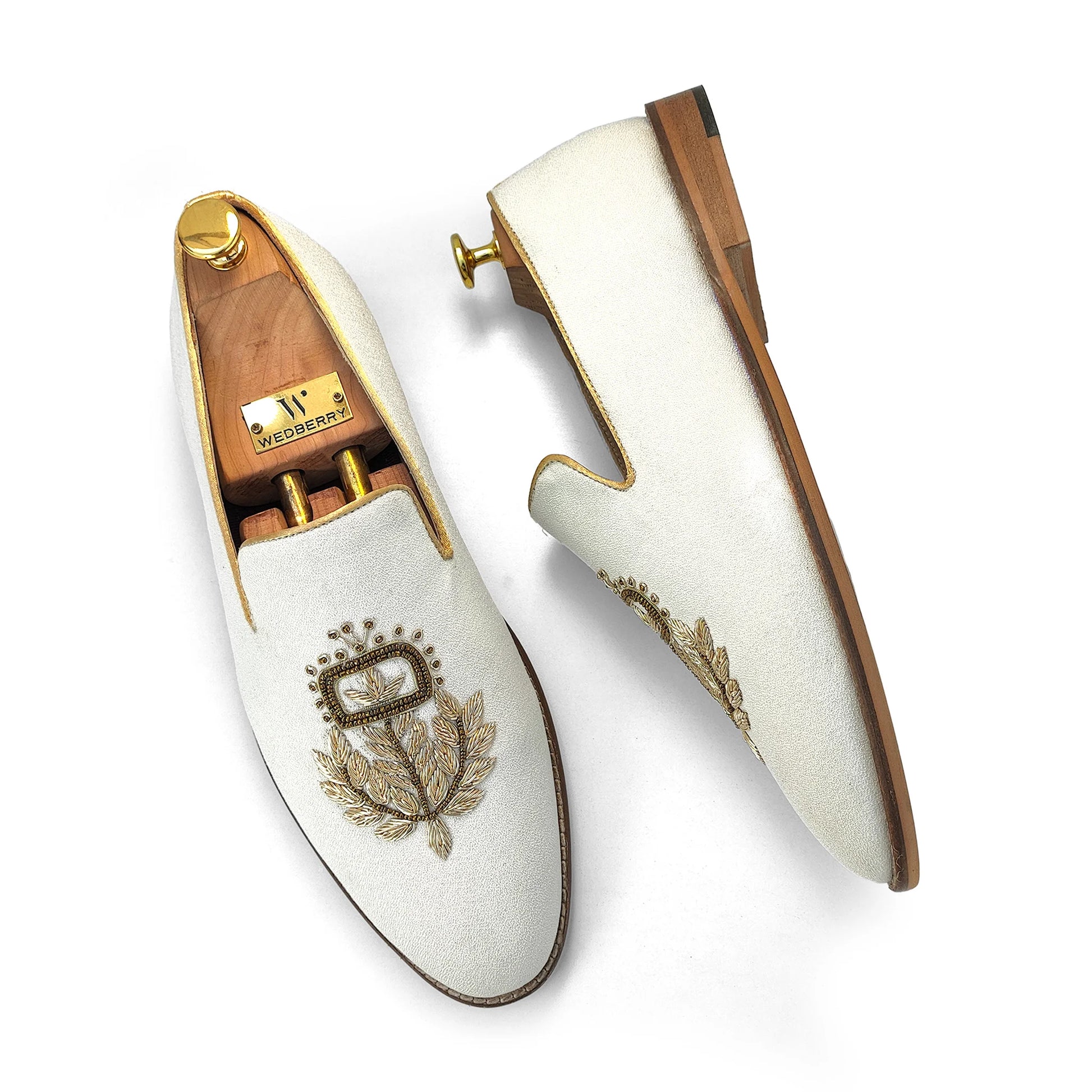 Off White Gold Zardozi Handwork Wedding Shoes Ethnic Shoes for Men