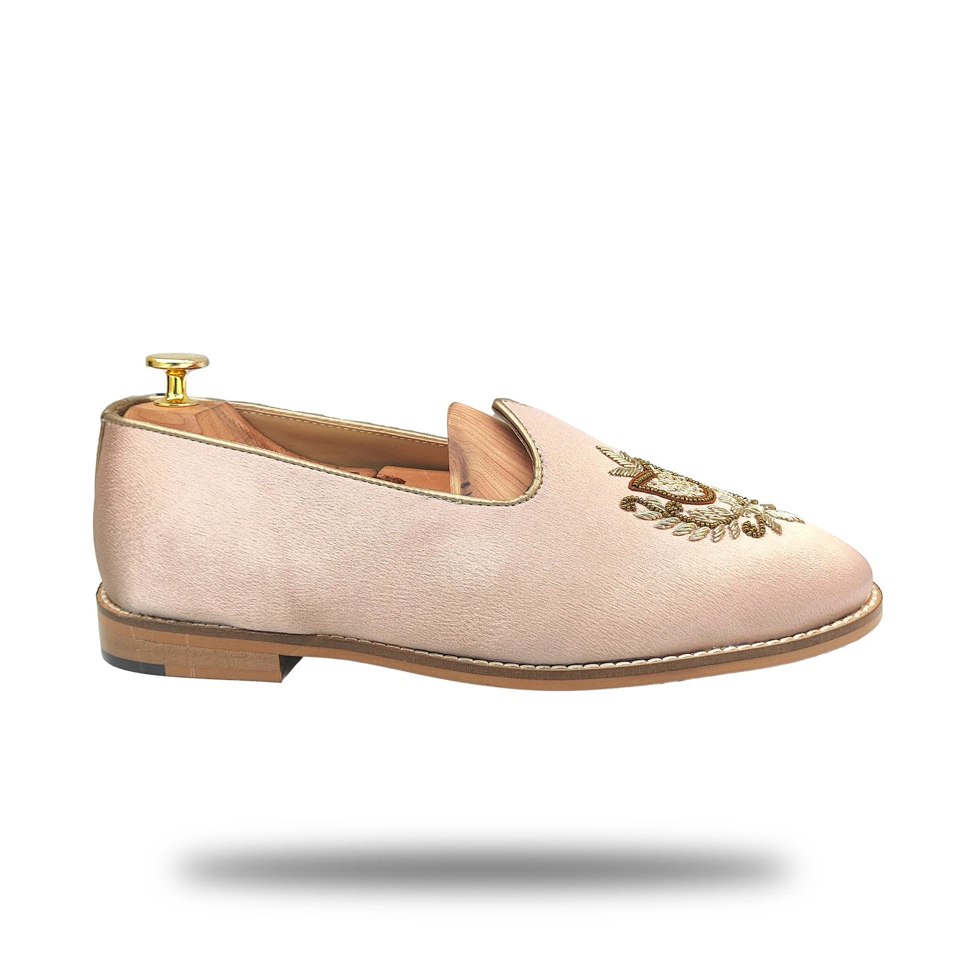 Pink Satin Gold Zardozi Handwork Wedding Shoes Ethnic Mojari for Men