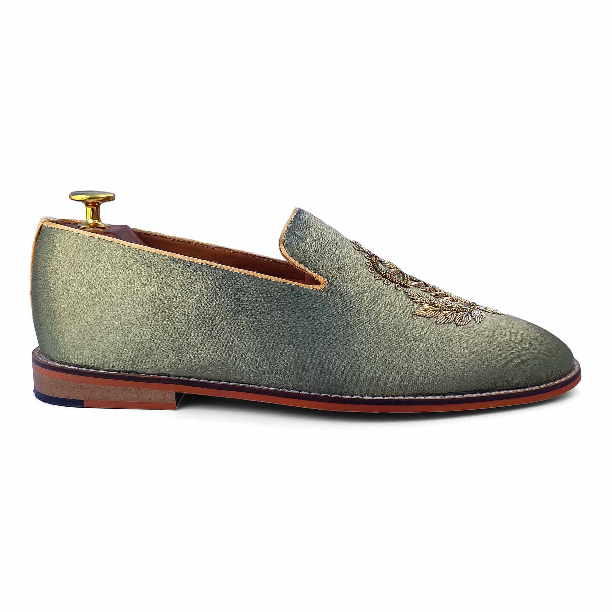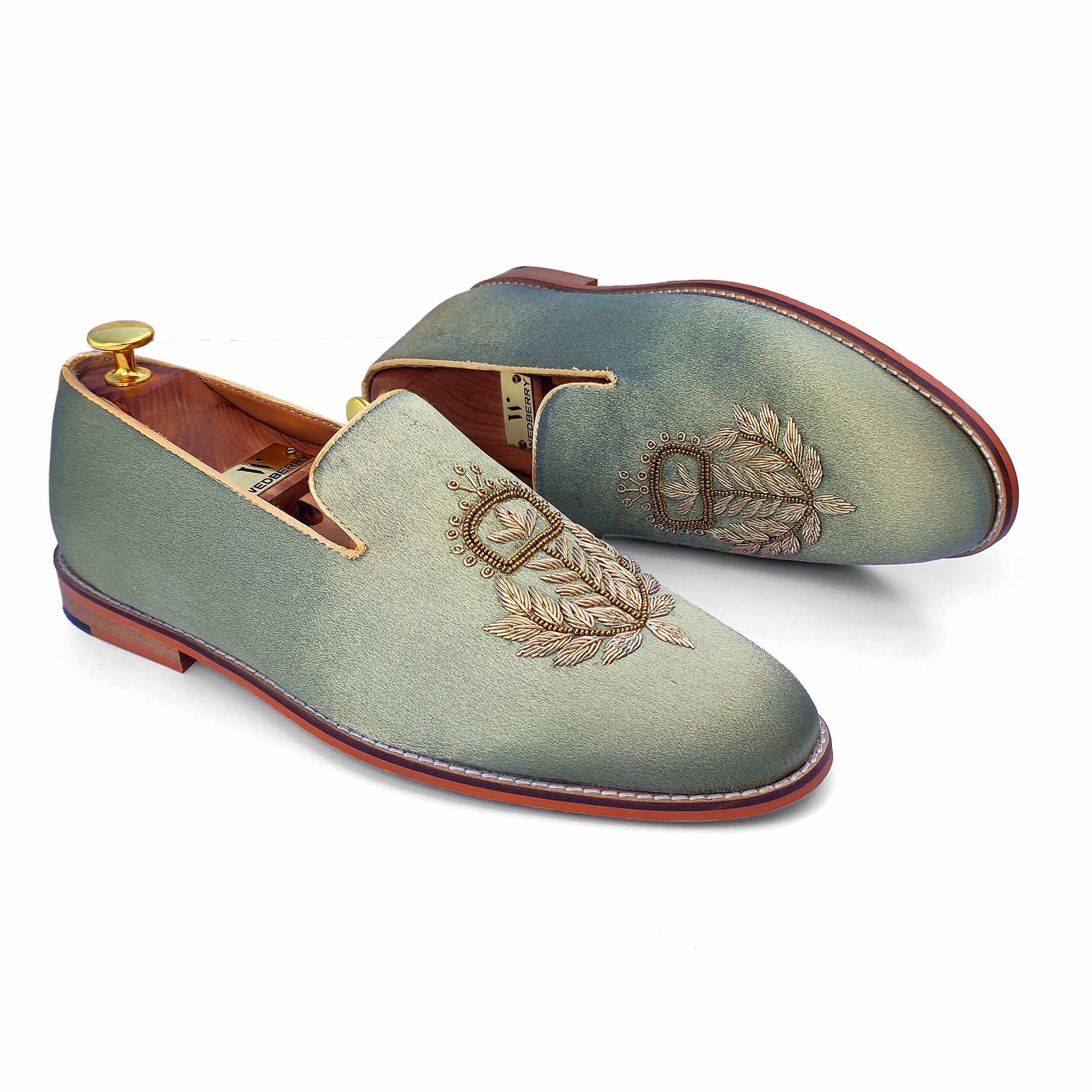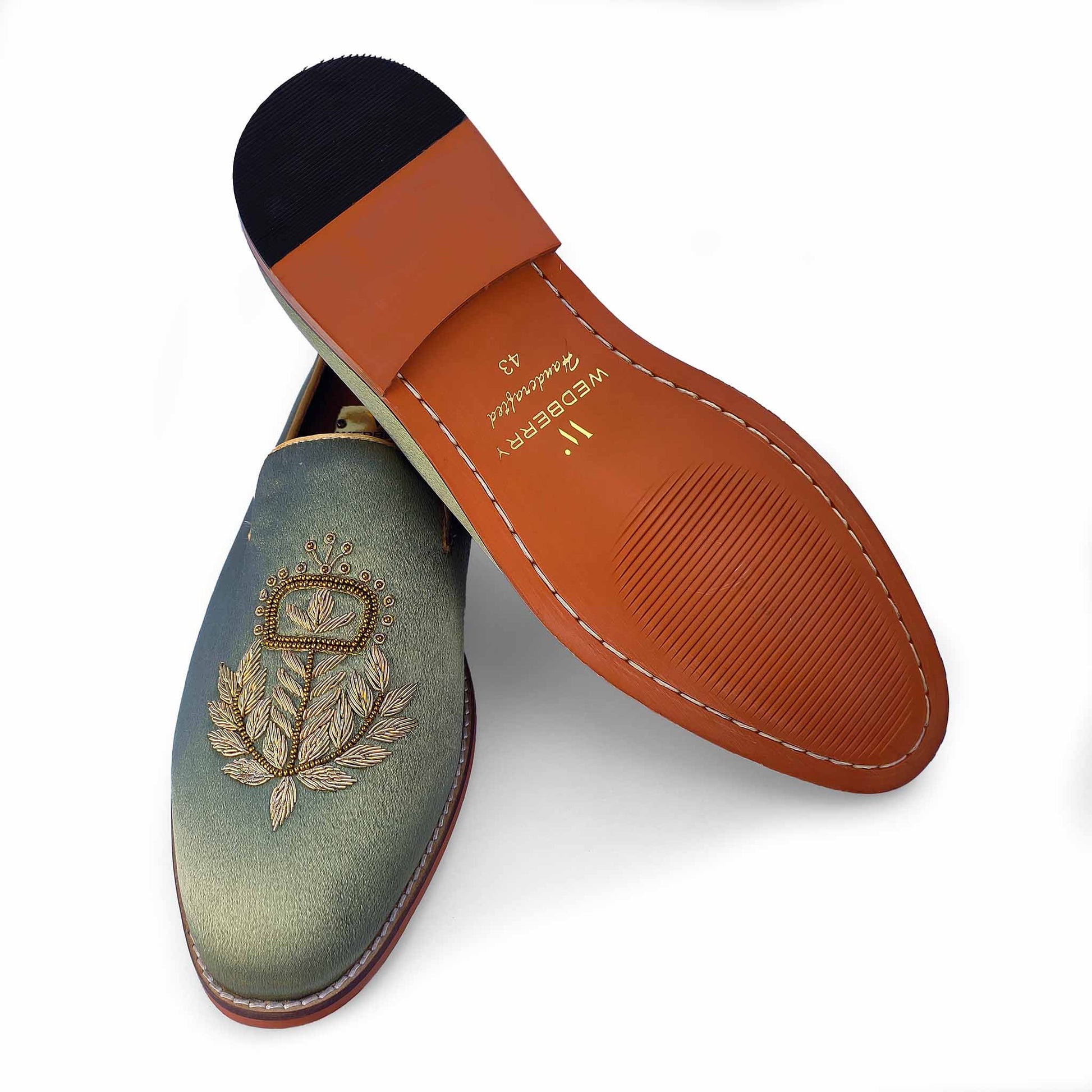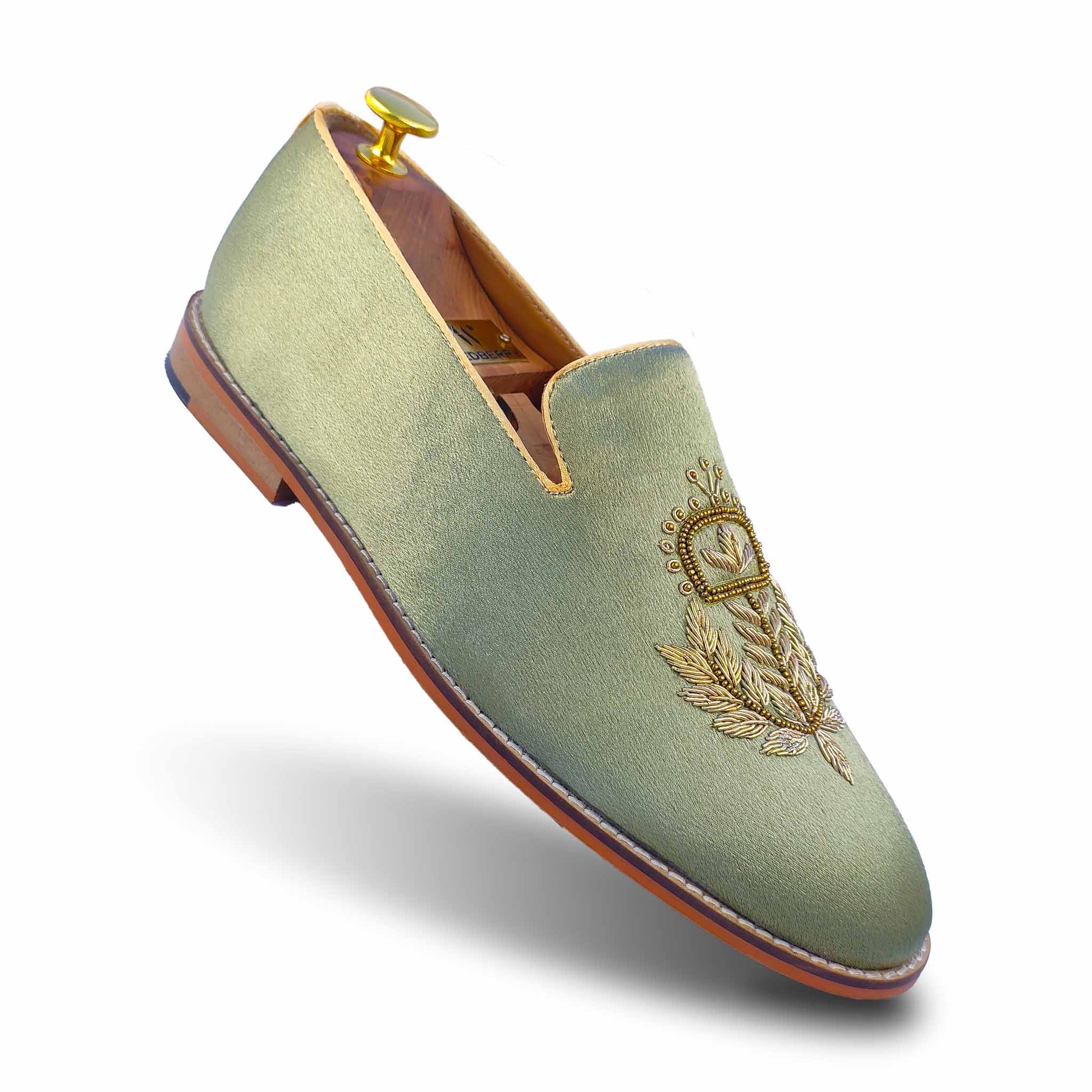 Pista Green Zardozi Handwork Wedding Ethnic Shoes for Men
