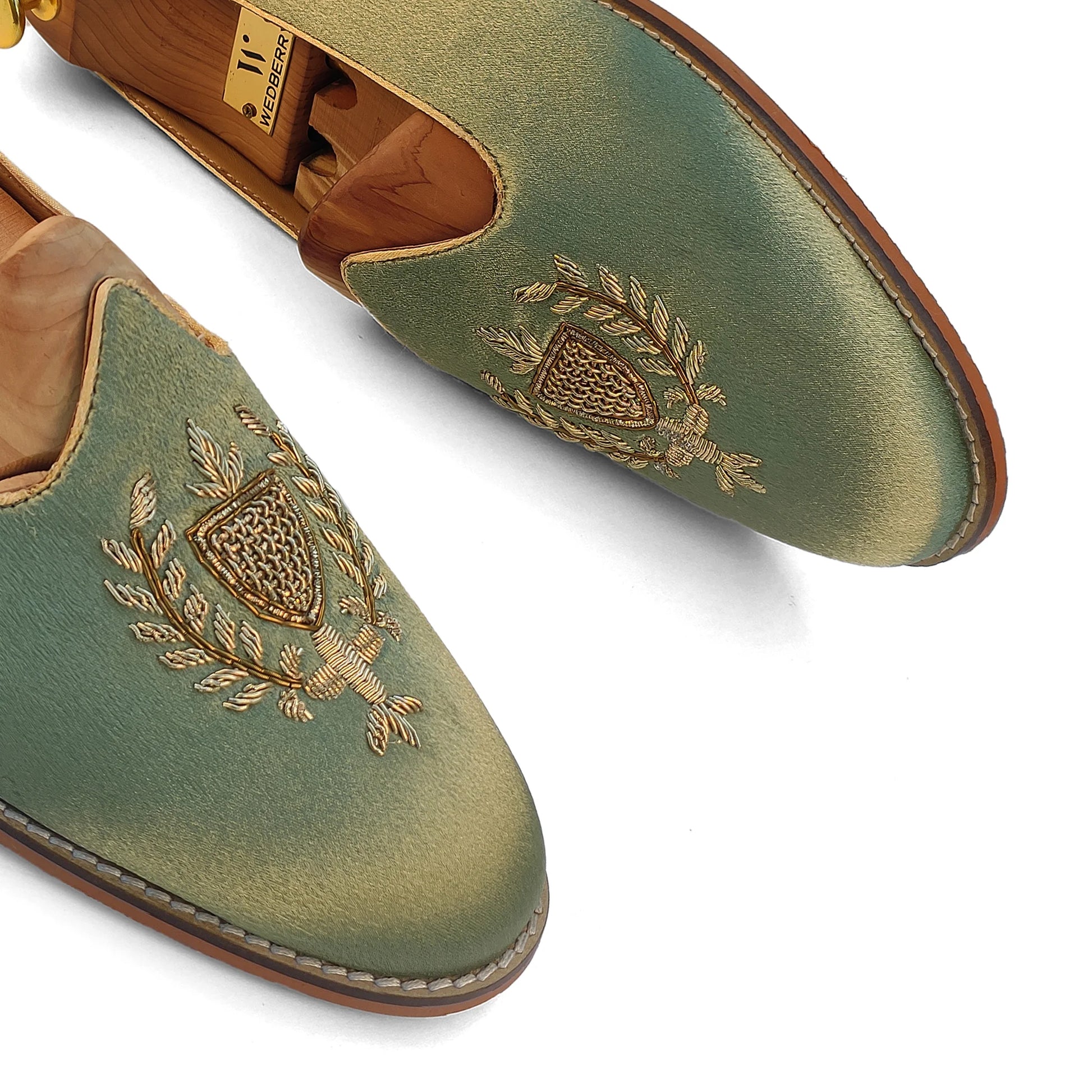 Pista Green Zardozi Handwork Wedding Ethnic Shoes Party Loafers for Men