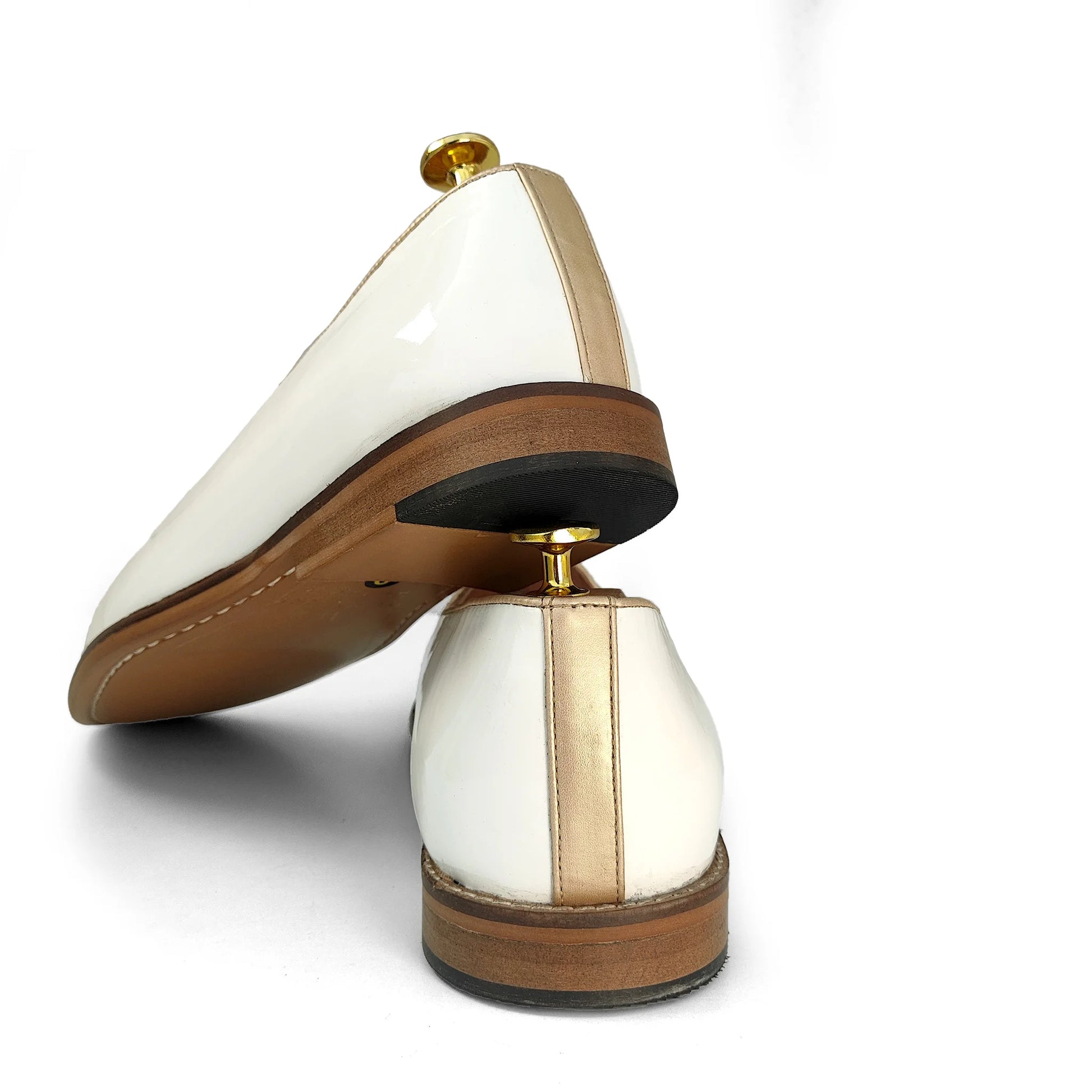 White Gold Zardozi Handwork Wedding Shoes Ethnic Mojari for Men